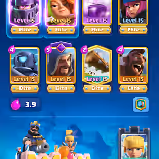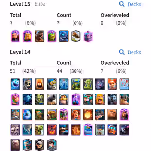 Arena Dominator | 14-15 | 30+ (Potentielt fuld max eller nær) | 8500 - 9k+ | Masser af maxede kort, flere Evolutioner, høj chance for eksklusive kosmetik og CRL badge potentiale. |