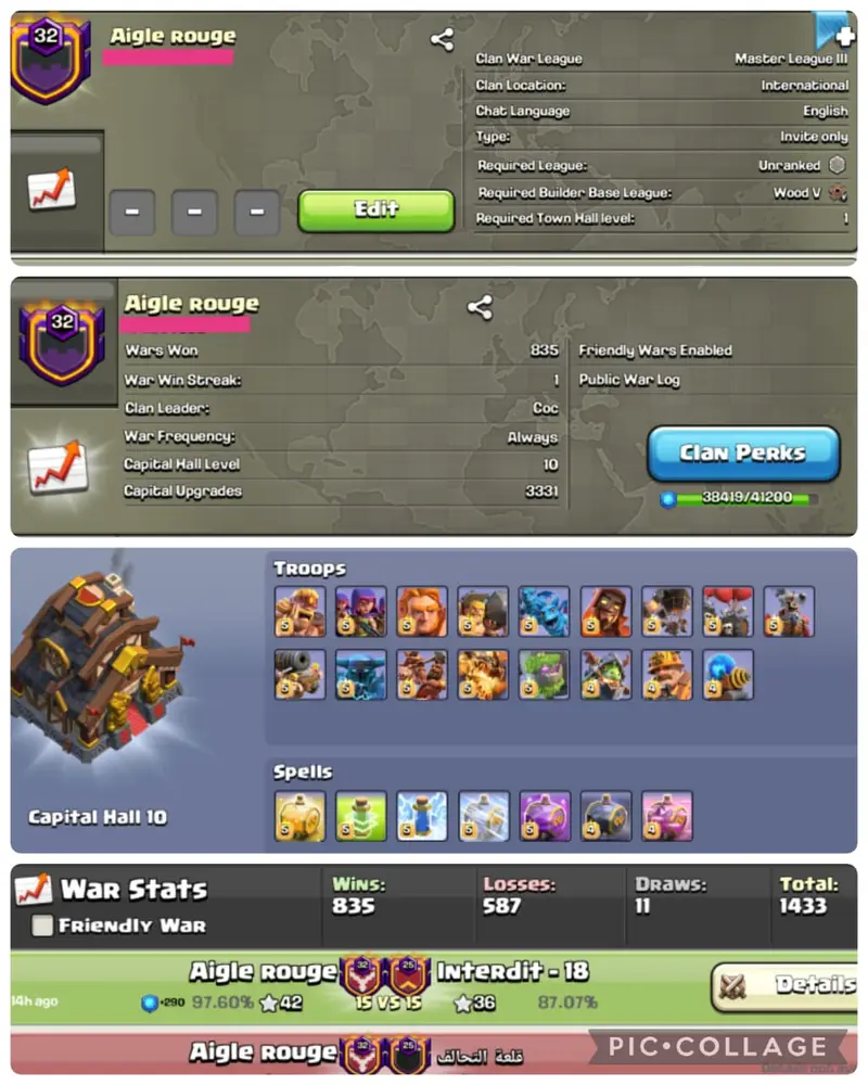 1.4K WAR LEVEL 32.9 MASTER 3 CC MAX NAME AIGLE ROUGE 835 WINS 587 LOSSES
