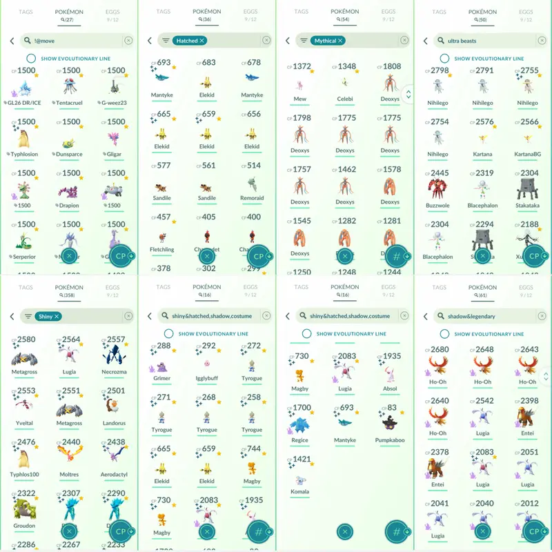 • Shiny Legendary + Mythical + Ultra Beasts: 34