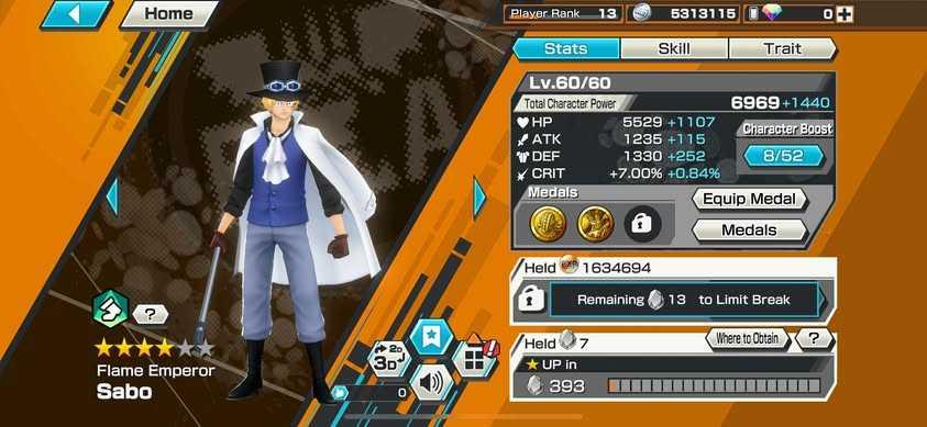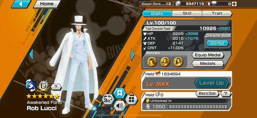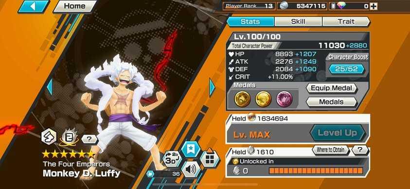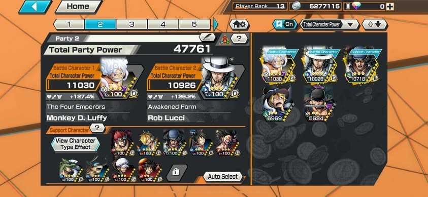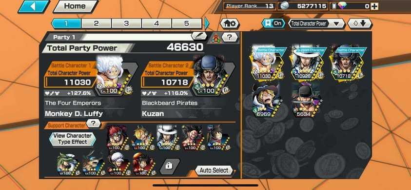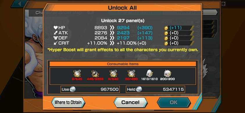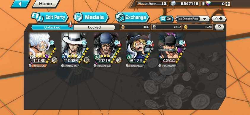 [3277][IOS+ANDROID] 5 EX / Luffy Light Can Up Boots 52/52 + Kuzan + Lucci + Sabo + Zoro , Solo Fresh