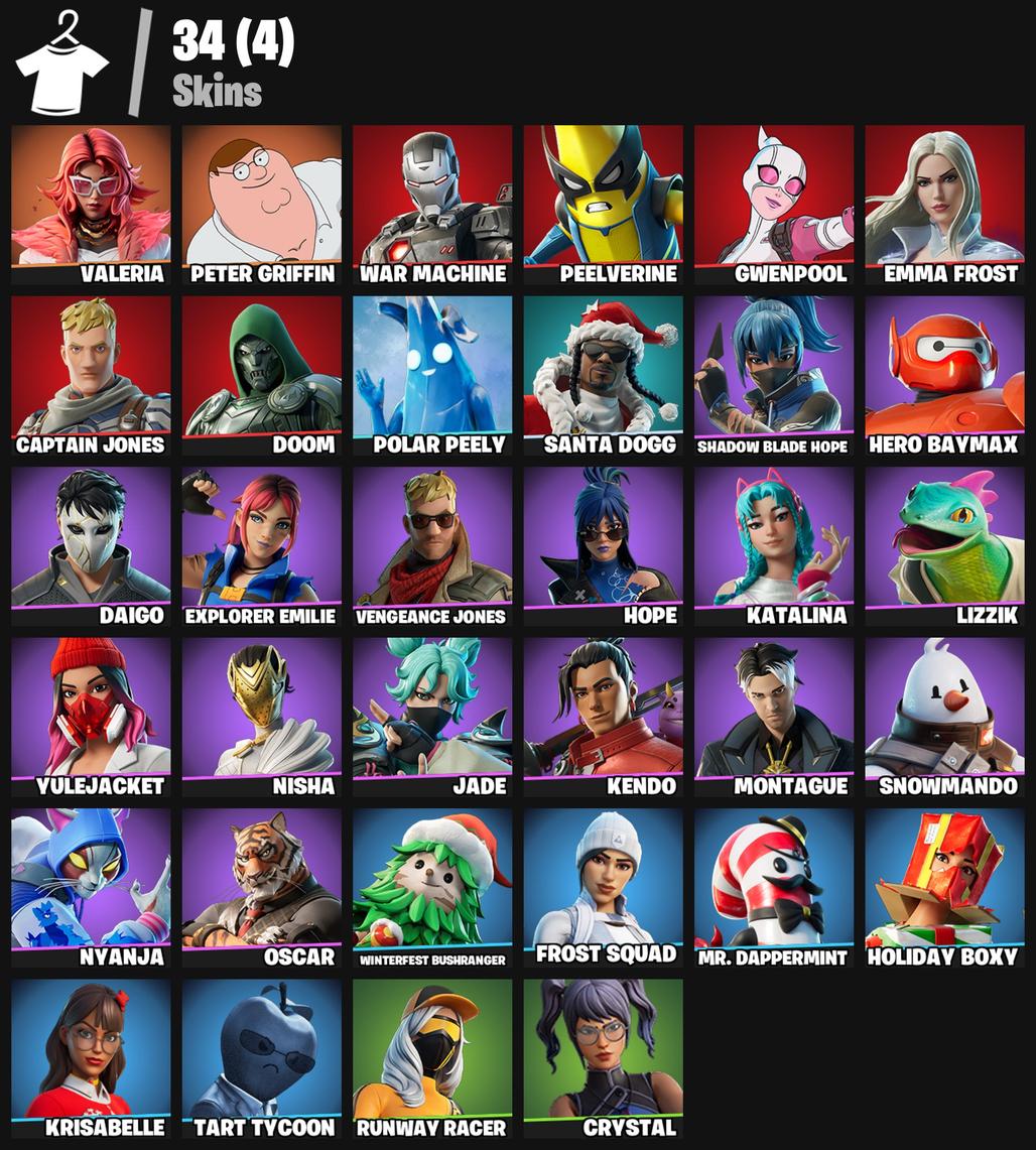 34 SKINS (PCPSNXBOX) CRYSTAL TART TYCOON VALERIA PETER GRIFFIN WAR MACHINE PEELVERINE G... ! MKG01400