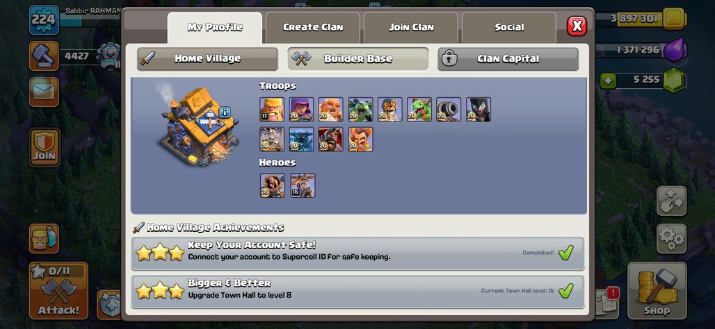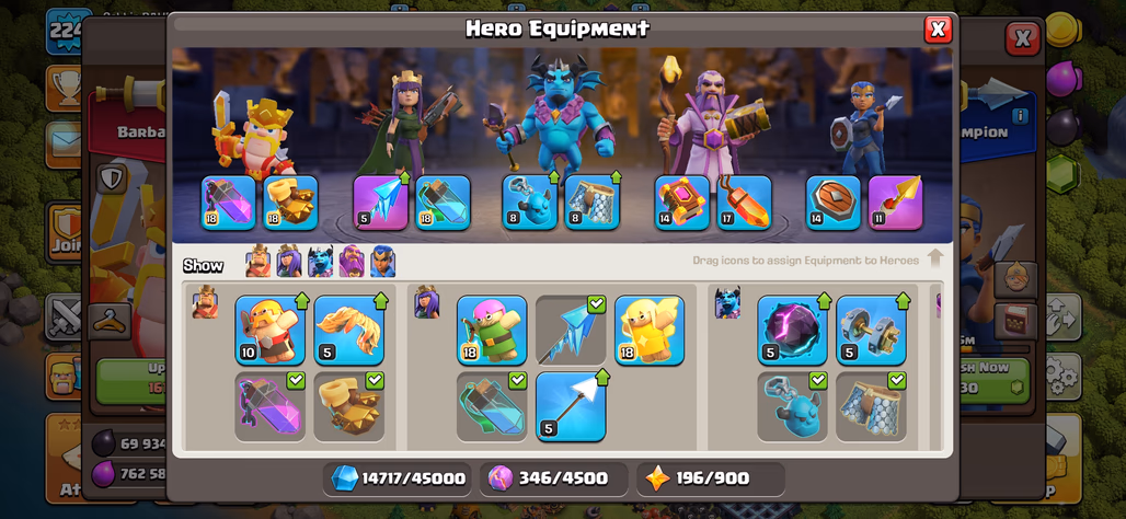 🔥5.2K GEMS!XP 224!TH 15 NEAR MAX🔥HEROS:72-83-41-55-20!NC 500!DARK BLUE WALLS!MAX TYPE DEFANCE!ALMOST MAX TROOPS