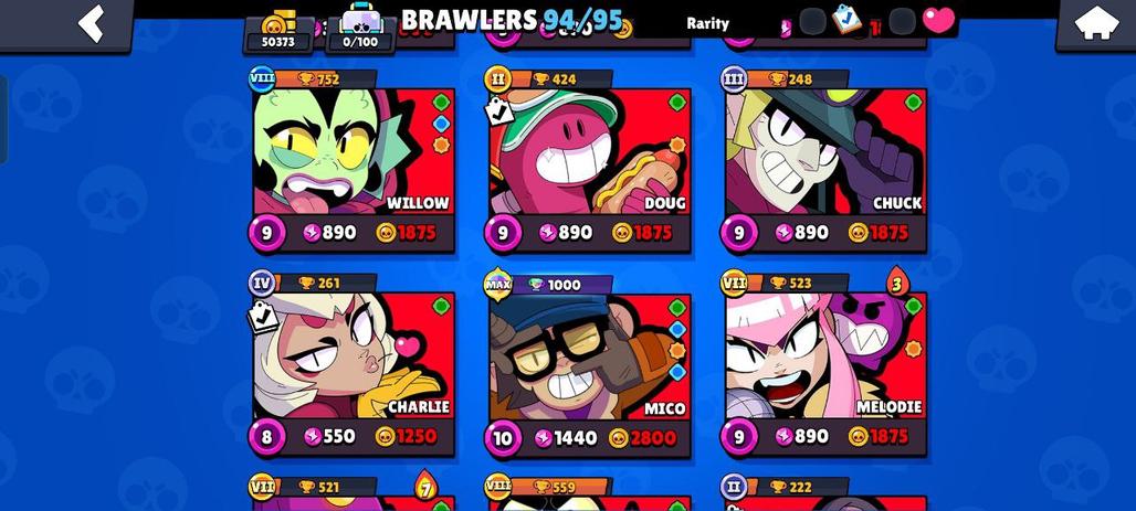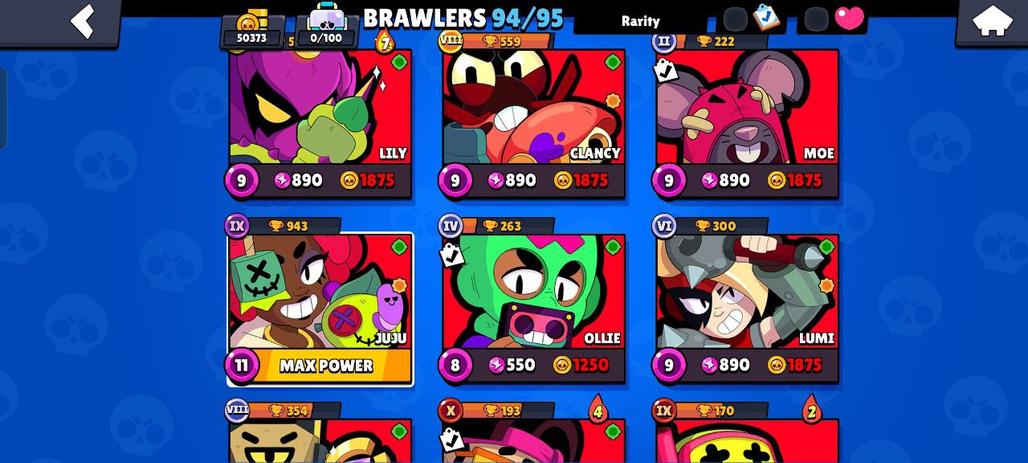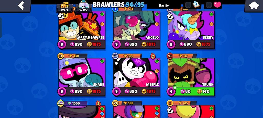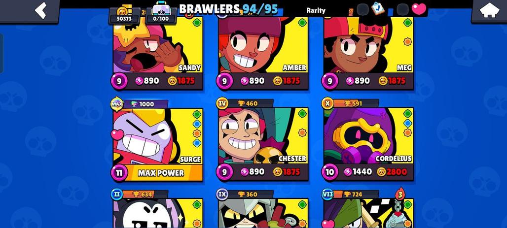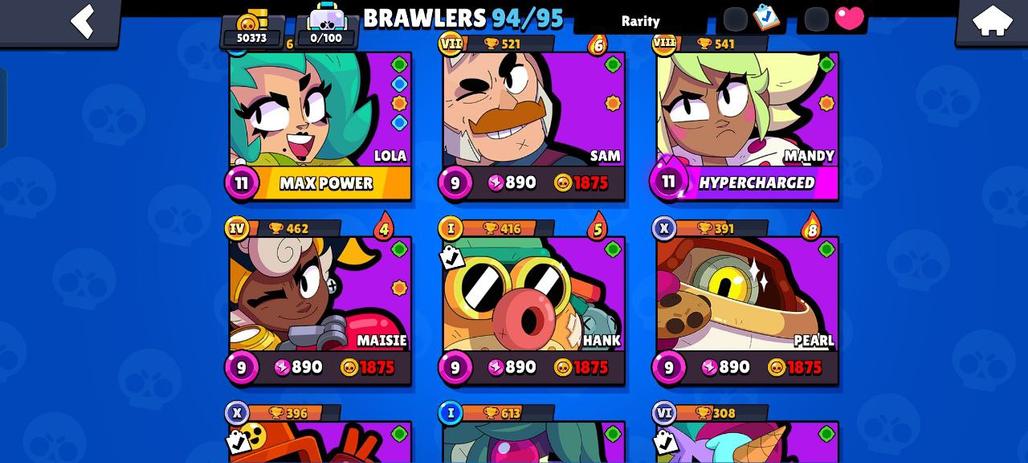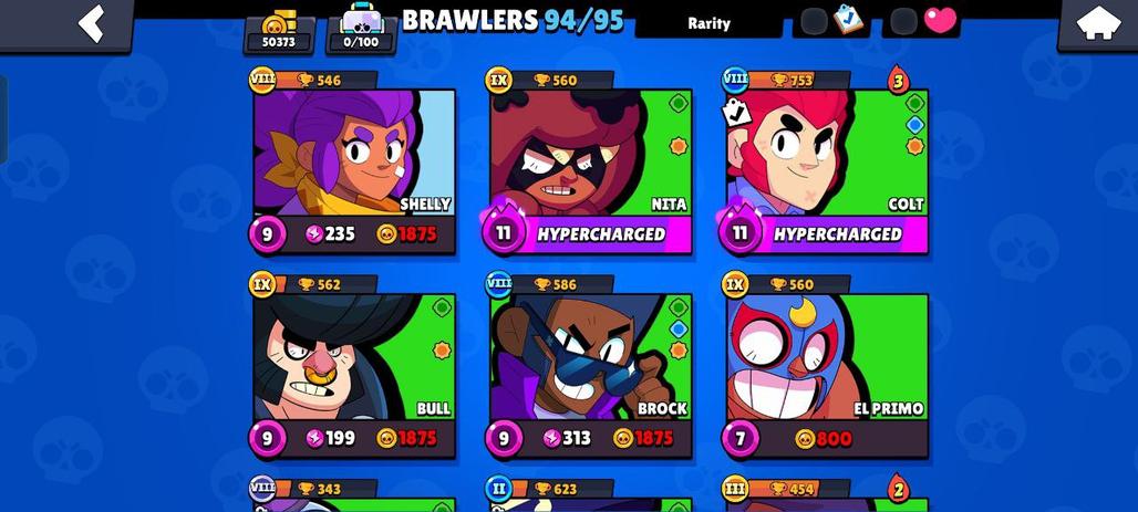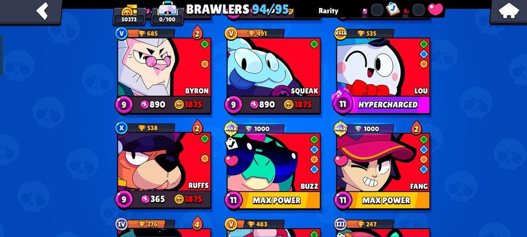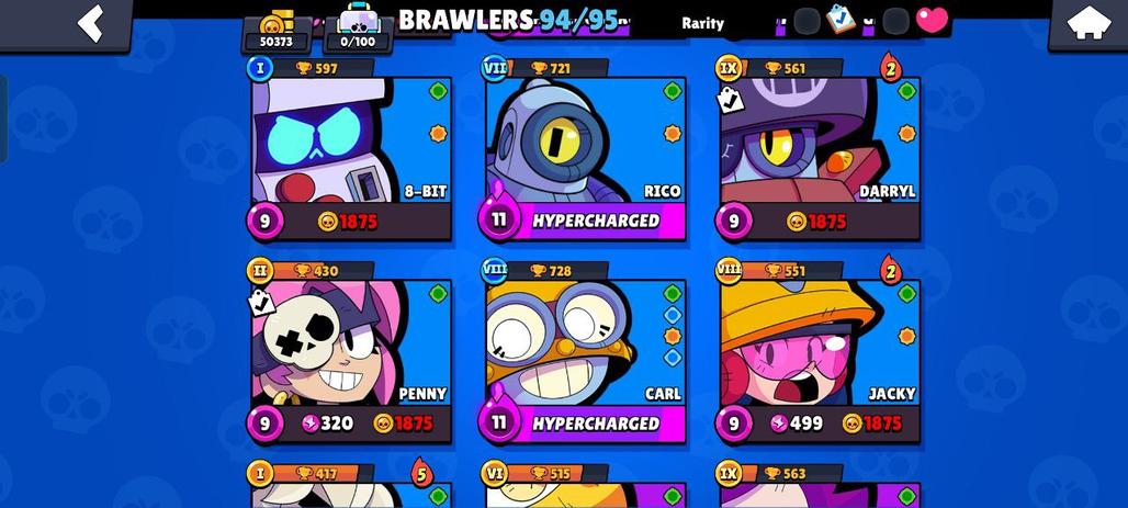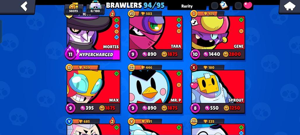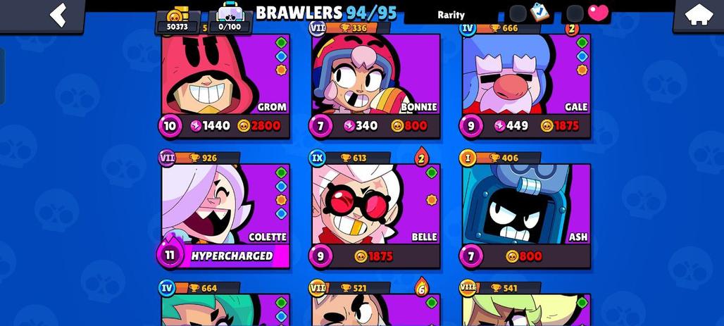 50401 TROPHIES | 94 BRAWLERS | 5 MAX | 13 HYPERCHARGE | 227 SKINS