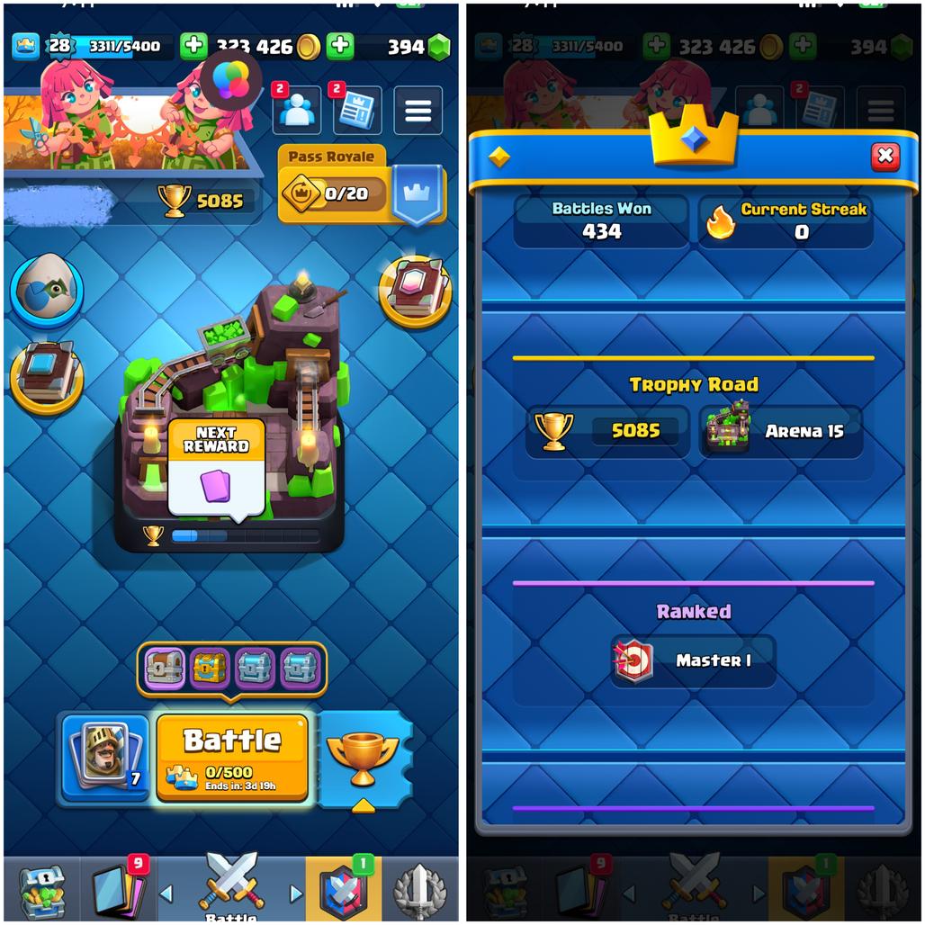 5085 Trophies | Level 28 | King Tower 10 | Arena 15 | Emote 22 Cards 86 | P527