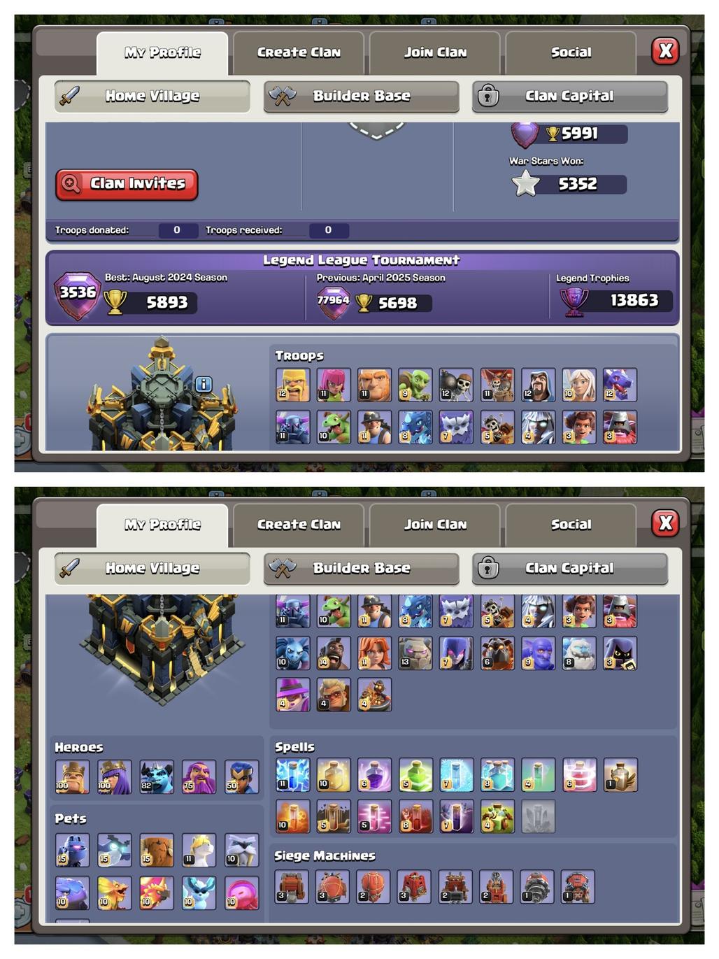 5350 WAR STAR | HEROS 100-100-82-75-50 | 5 EPIC MAX | ALL EPIC HIGH LEVEL | TH 17 NEAR MAX ACCOUNT | HIGH WALL+DEF