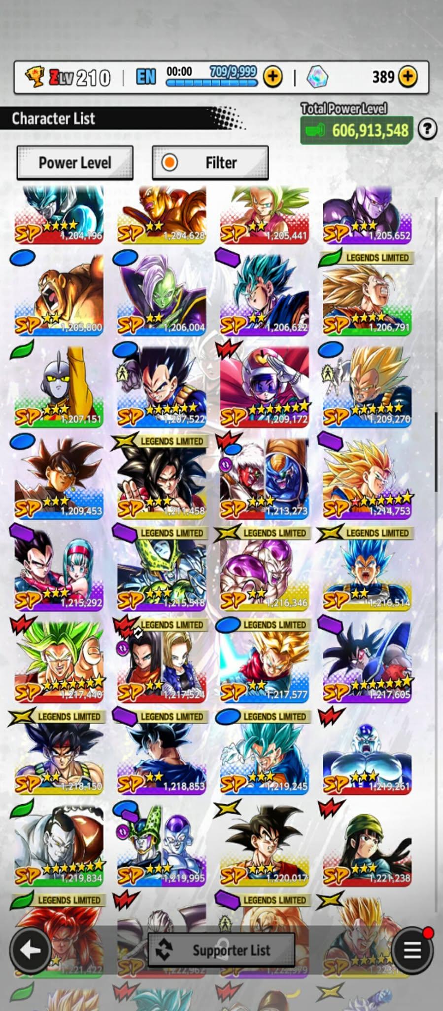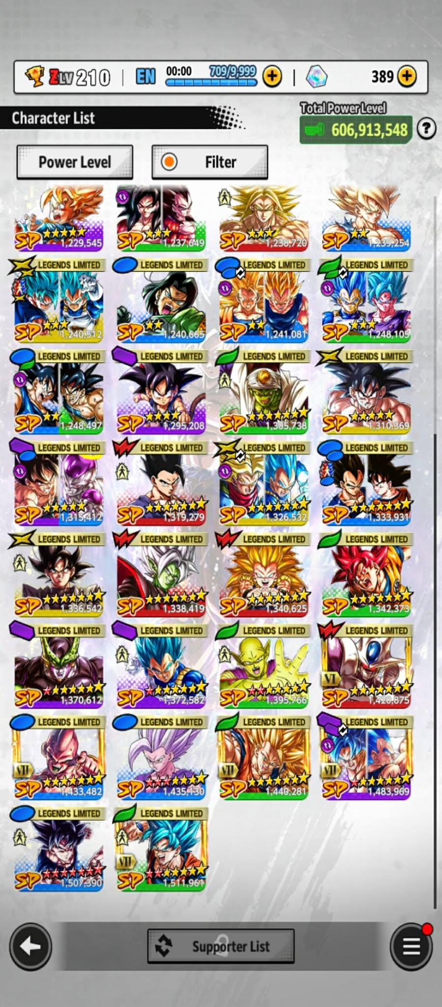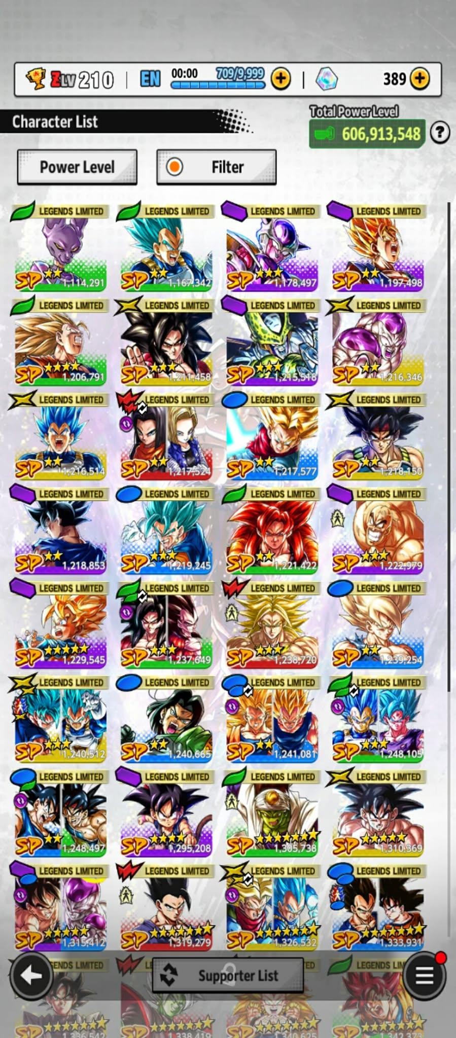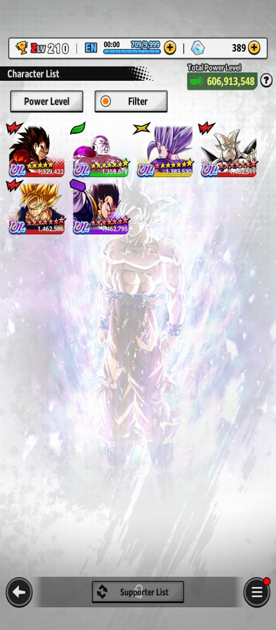 606m Power+ UL Gohan beast 8S+UL Fide+UL ss4 Vegeta+ 46 LL (Uis Goku Full+Goku god+god ss Goku 9s+vegeta 8s+beast gohan 10s)Zenkais 27+ Vip Equip(941)
