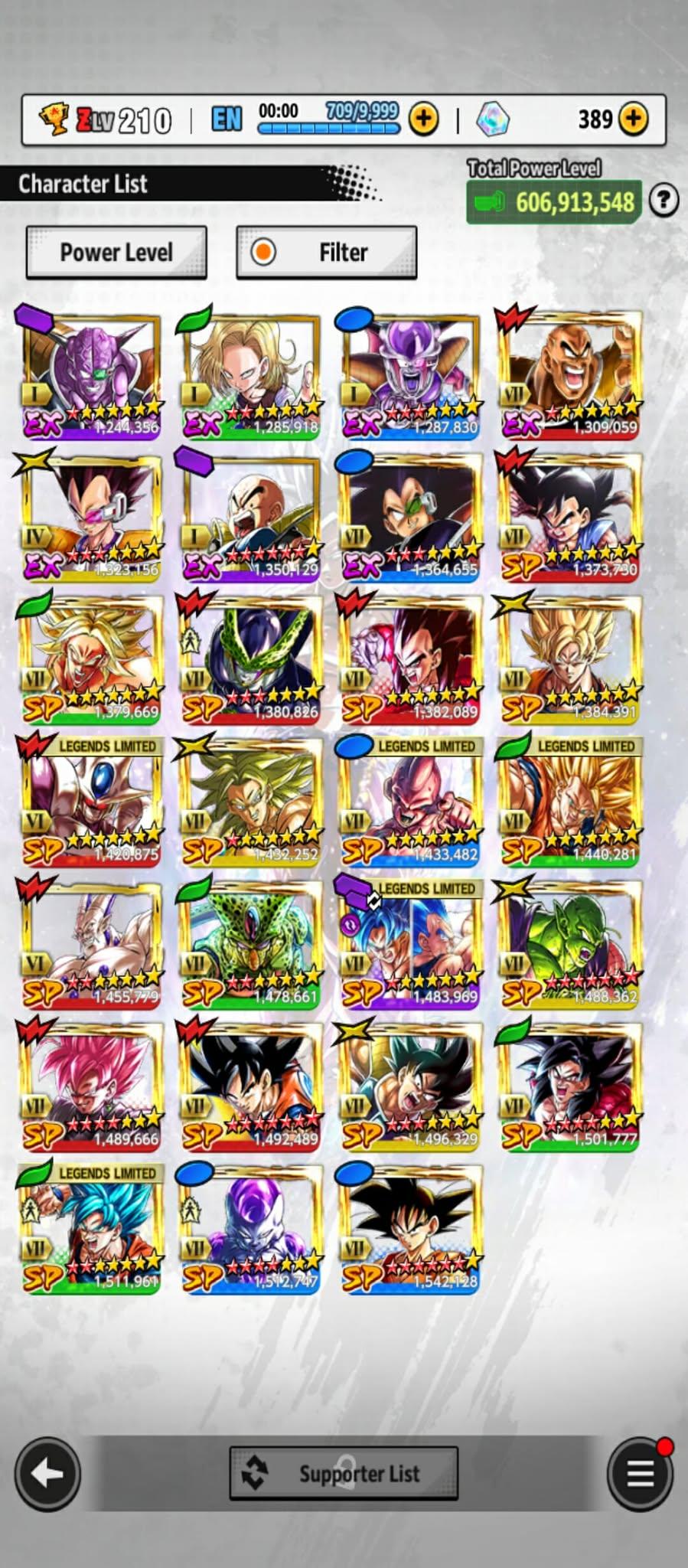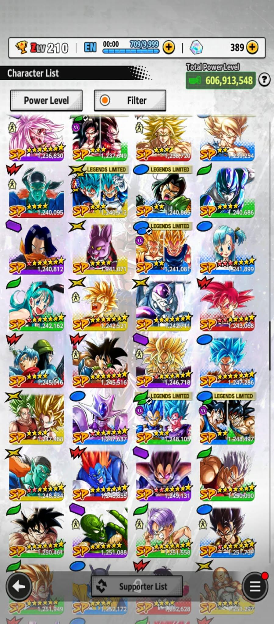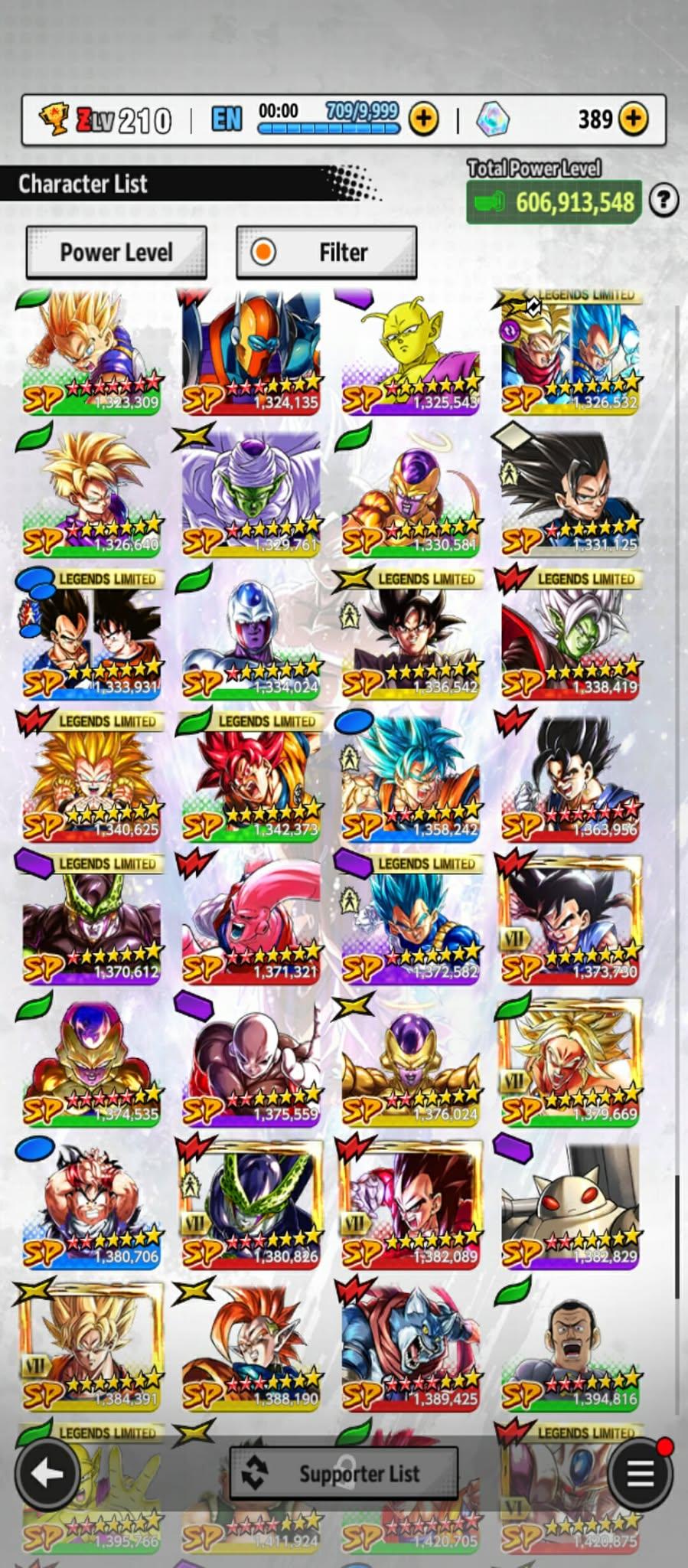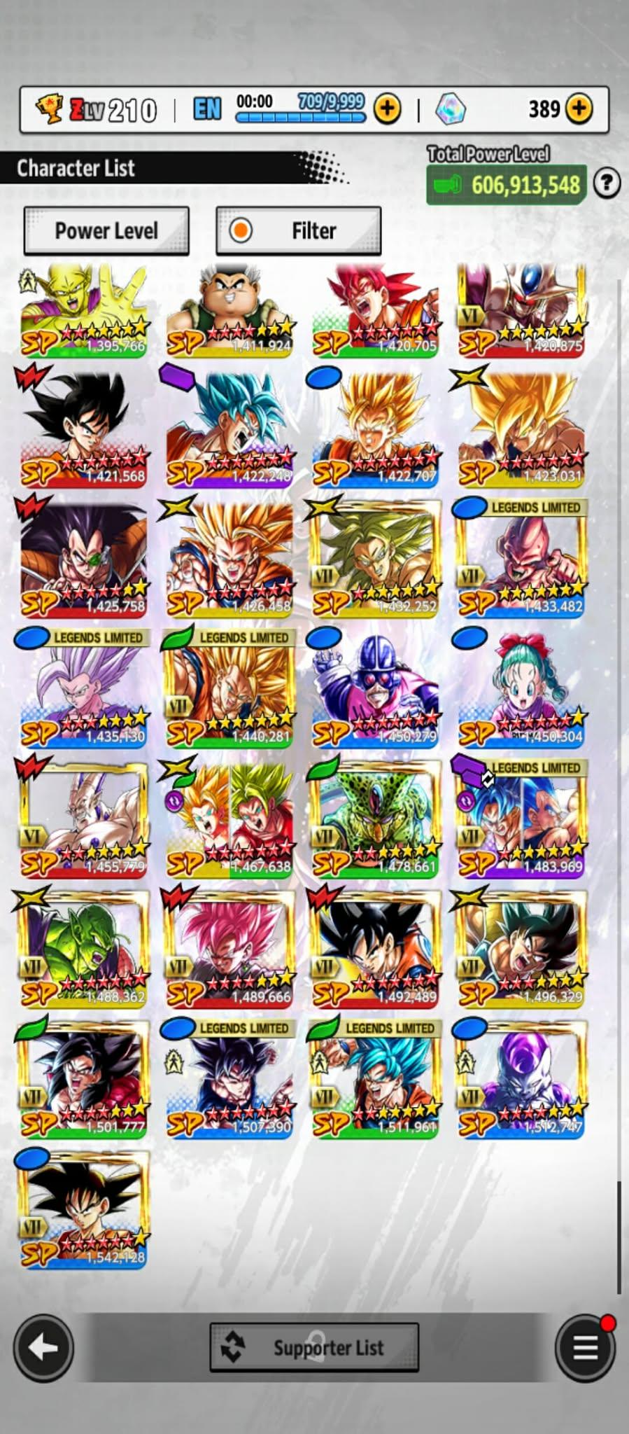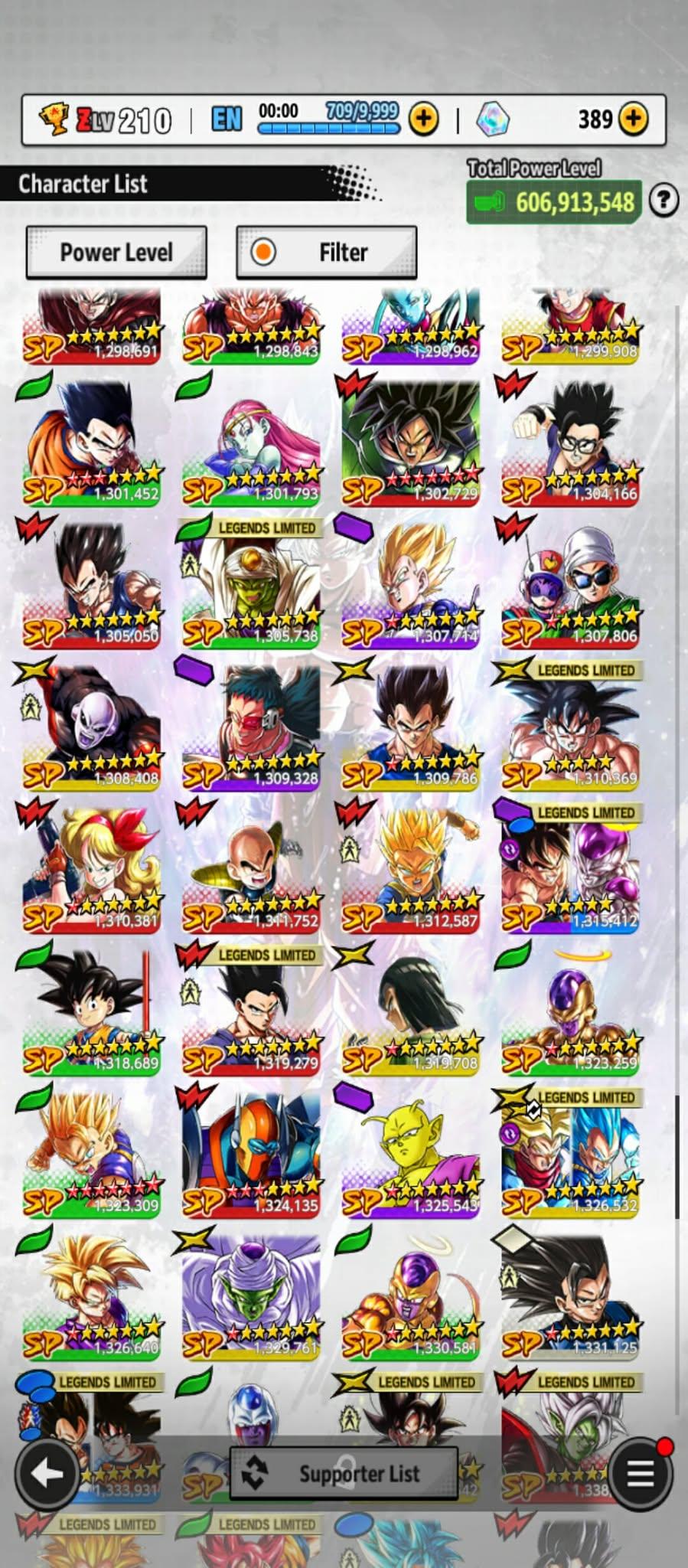 606m Power+ UL Gohan beast 8S+UL Fide+UL ss4 Vegeta+ 46 LL (Uis Goku Full+Goku god+god ss Goku 9s+vegeta 8s+beast gohan 10s)Zenkais 27+ Vip Equip(941)