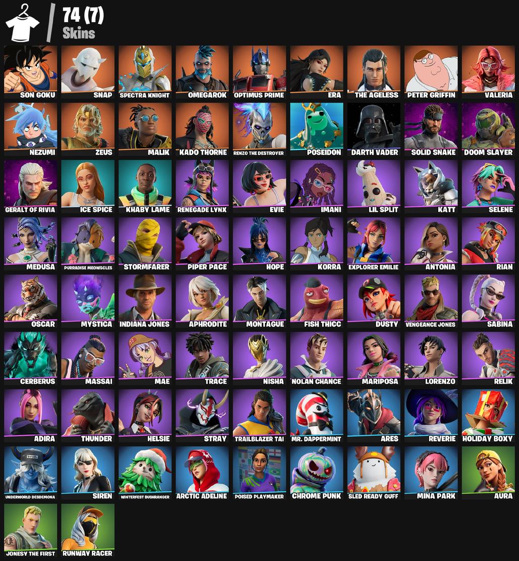 74 SKINS (PCXBOX) AURA SIREN DARTH VADER INDIANA JONES SON GOKU GERALT OF RIVIA SNAP SPEC... ! MKG01467