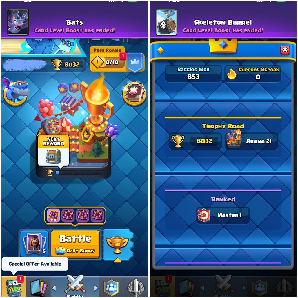 8032 Trophies | Level 42 | King Tower 14 | Arena 21 | Emote 15 Cards 118 | P469