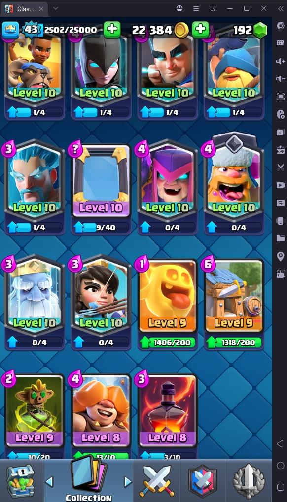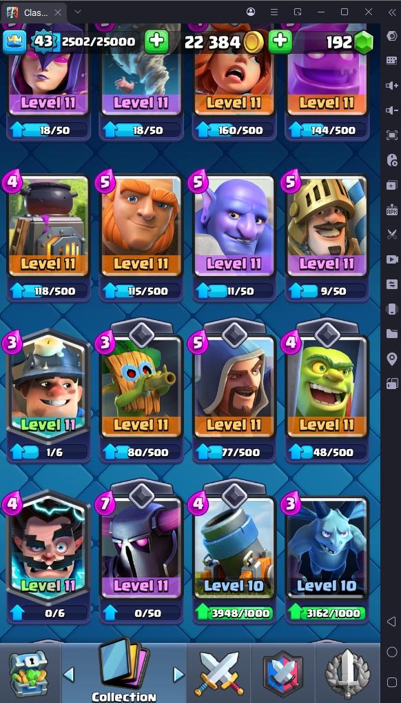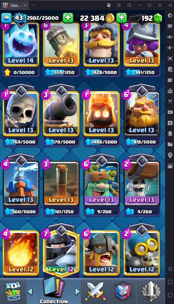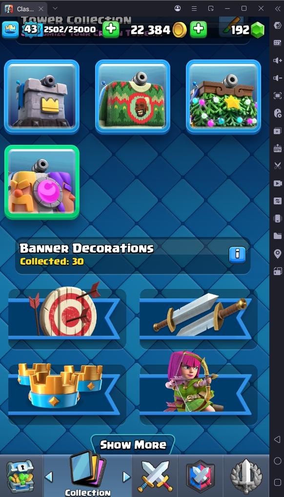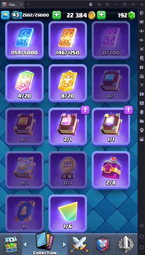 📌 Trophies, Level, King Tower, and Cards as listed below -