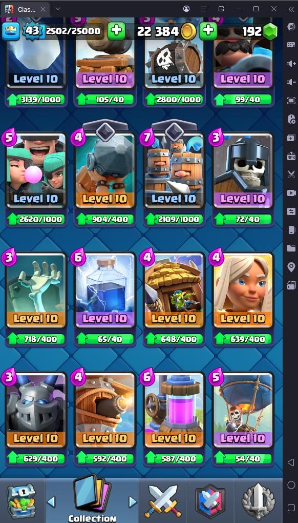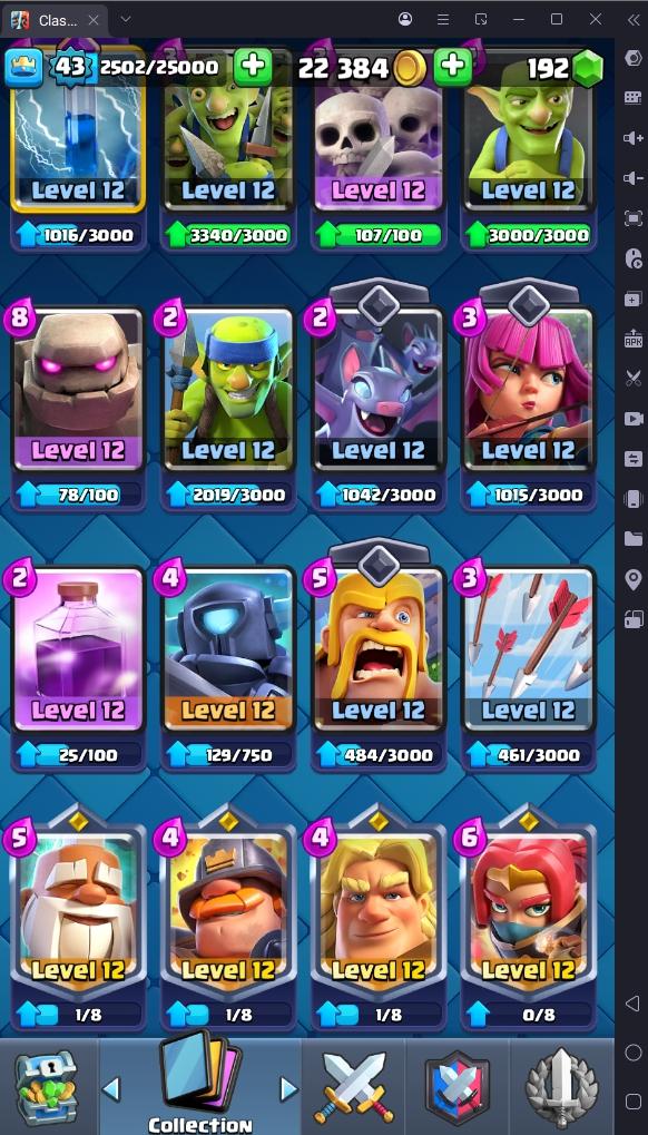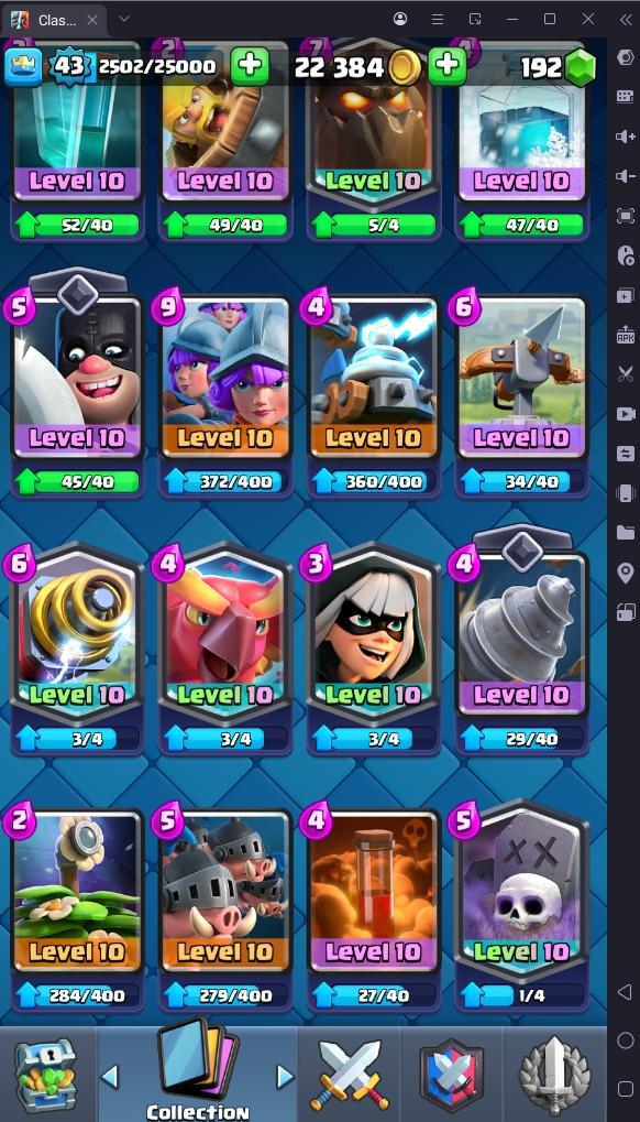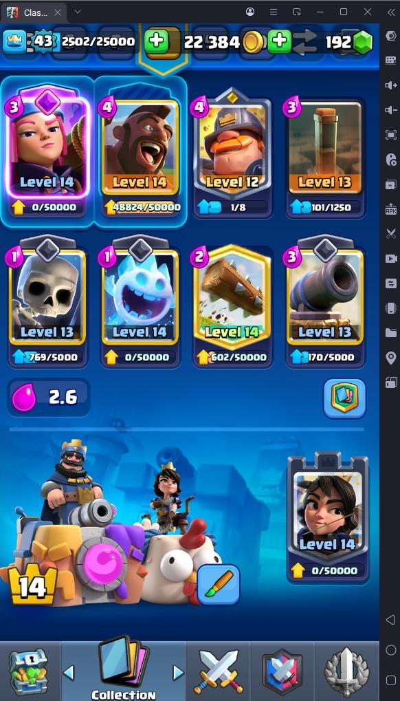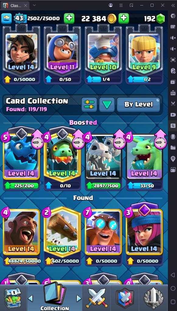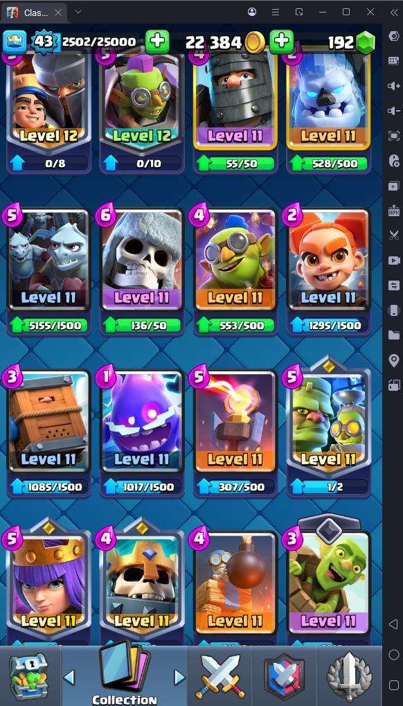 📌 Trophies, Level, King Tower, and Cards as listed below -