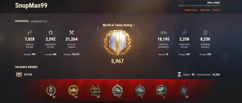 Here you can see the account statistics: worldoftanks. eu/community/accounts/519244782-SnupMan99