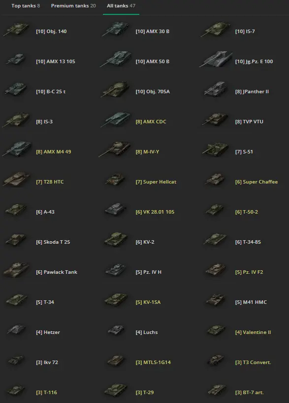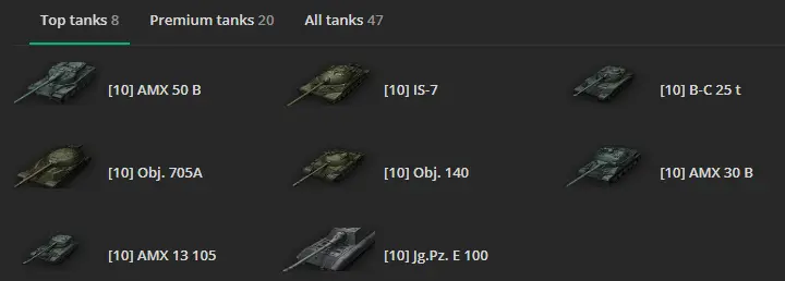 [EU] 8 TIER X | 20 PREMIUM TANK | TOTAL TANKS 47 | 10,774 (51%) WINS | 3,379,710 CREDITS | SEE DESCRIPTION