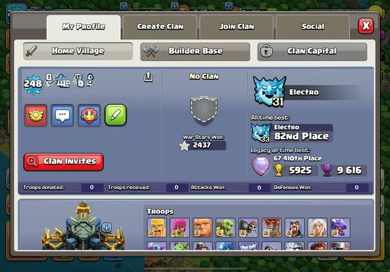Elevate your Clash of Clans experience with this exceptional premium account, featuring a fully maxed Town Hall 17. Command the battlefield with maximum-level heroes and pets, ensuring a decisive competitive advantage. This account is equipped with 33 powerful equipment items and includes 2,000 medals to boost your in-game prowess. Impress fellow players with a high experience level of 248 and exclusive skins. Achieve instant prestige with 9,000 cups, supported by an outstanding war record of 2,437 wins. Additionally, it features a Builder Hall 10, all set for immediate transfer. Seize this ultimate opportunity to dominate opponents and transform your gameplay today!