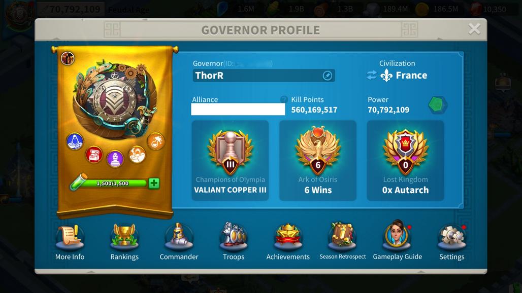 All Platform - 3 T5 - Max 8 Commanders - 30 Passports - 350 gold head - 10k Gems - 4 farm - 1 skin house
