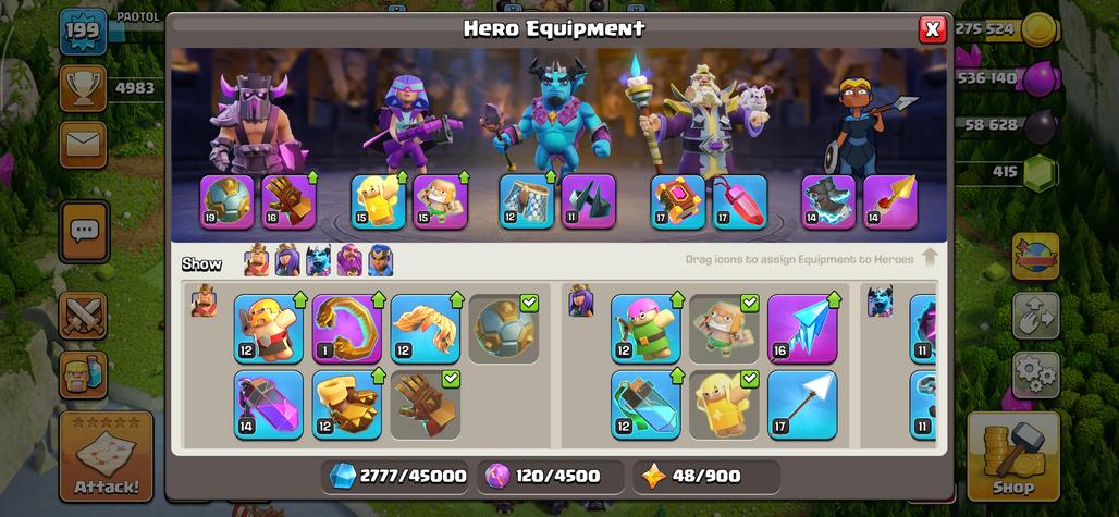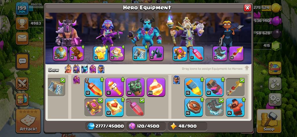 BEST OFFER TH 15 NEAR FULL MAX | HERO [ 81-84-56-59-33 ] 11 EPIC EQUIPMENT | NC-500 | 6 BUILDER | XP-199 | NEAR MAX TRO