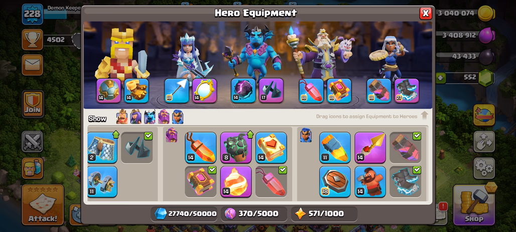 🌟BEST TH 16 NEAR MAXED 🌟HERO [ 68-72-59-55-41] | EPIC EB-MAX DK-17 MM-14 FB-14 | NC FREE | DEF FULL MAXED | BEST OFFER