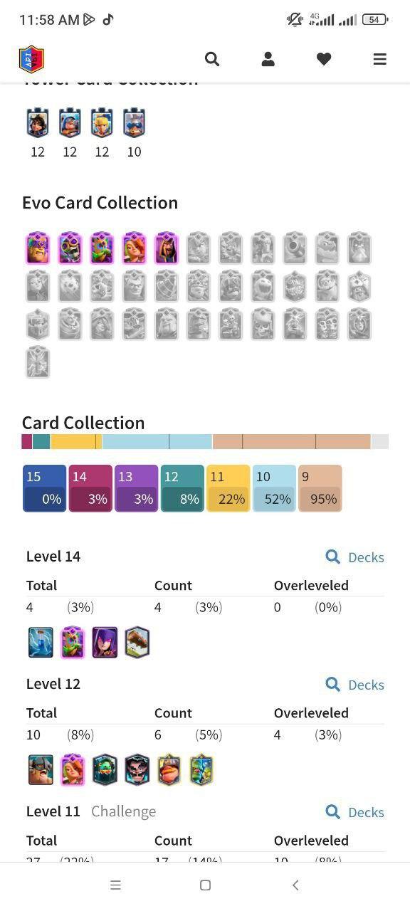 [CHEAPEST] KT (12) 6800 CUPS - 36 XP - 119 CARDS - 5 EVOLUTION CARDS - 4 MAX CARDS - 10 LVL 12 - 3 SKINS OF KT !59