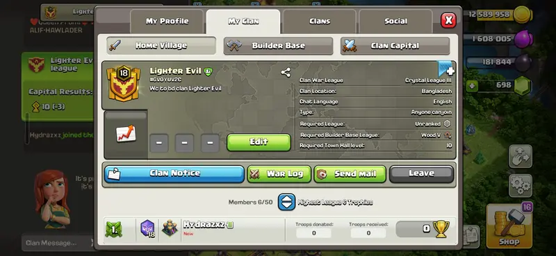 Clan Name-LIGHTER EVIL-| Clan Level-18 | Capital Hall-8 max | Instant Delivery