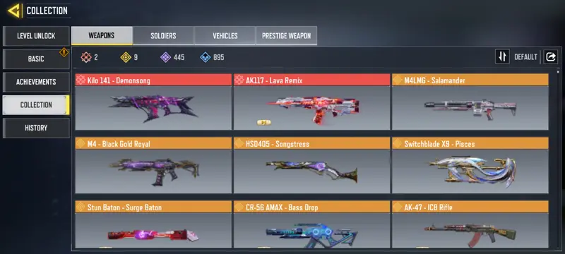 Guns: 2 Mythic | 9 Legendary | 445 Epic