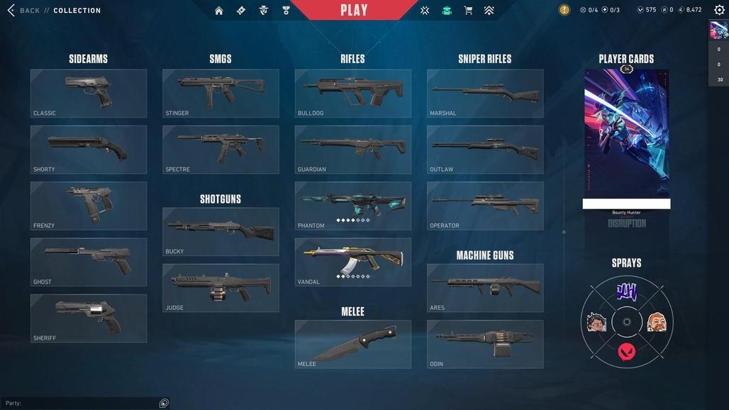 ✔️Valorant points 575, Radianite Points 0, Kingdom Credits 8472
