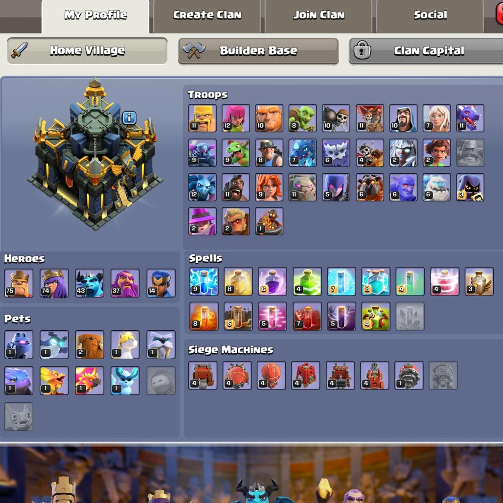 TH17 || KING LEAGUE SKIN || HIGH DEFENSE & BLUE WALLS || HEROES K-75 AQ-74 MP-43 GW-37 RC-14 || 6 EPIC EQUIPMENT || NAMECHANGE AVALIABLE || 1900 GEMS