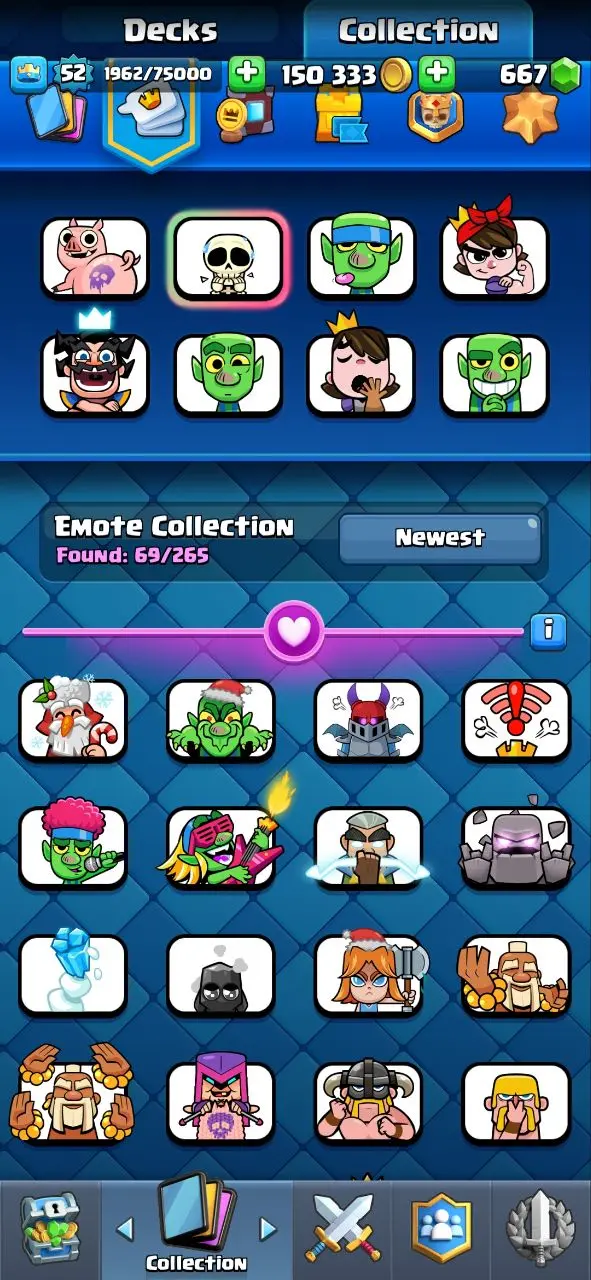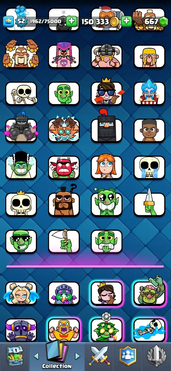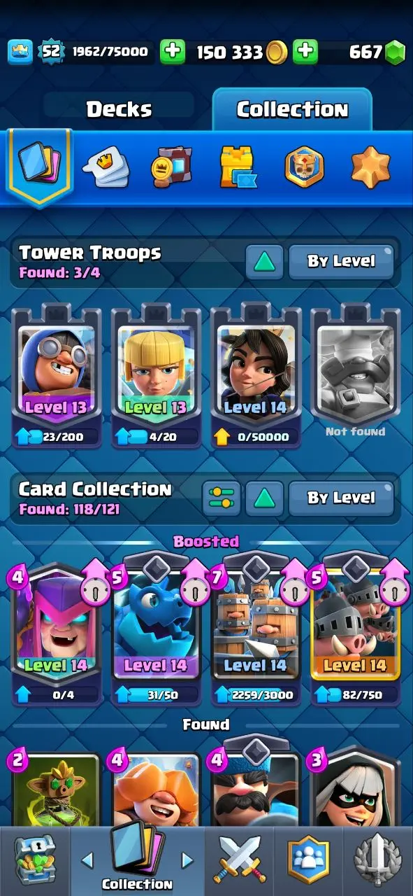 🔥KT14 XP52🔥 | 17 MAX 4 ELITE | 6 EVOLOTIONS | 9591 TROPHY | 69 EMOTE | 7 TOWER SKIN | 667 GEMS | INSTANT DELIVERY