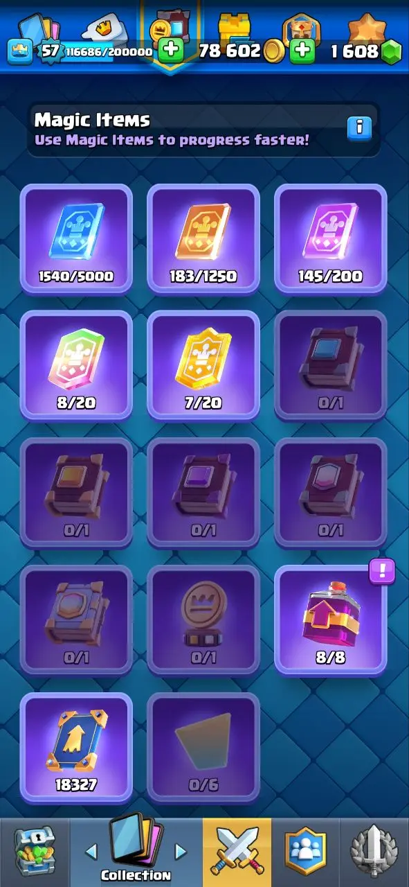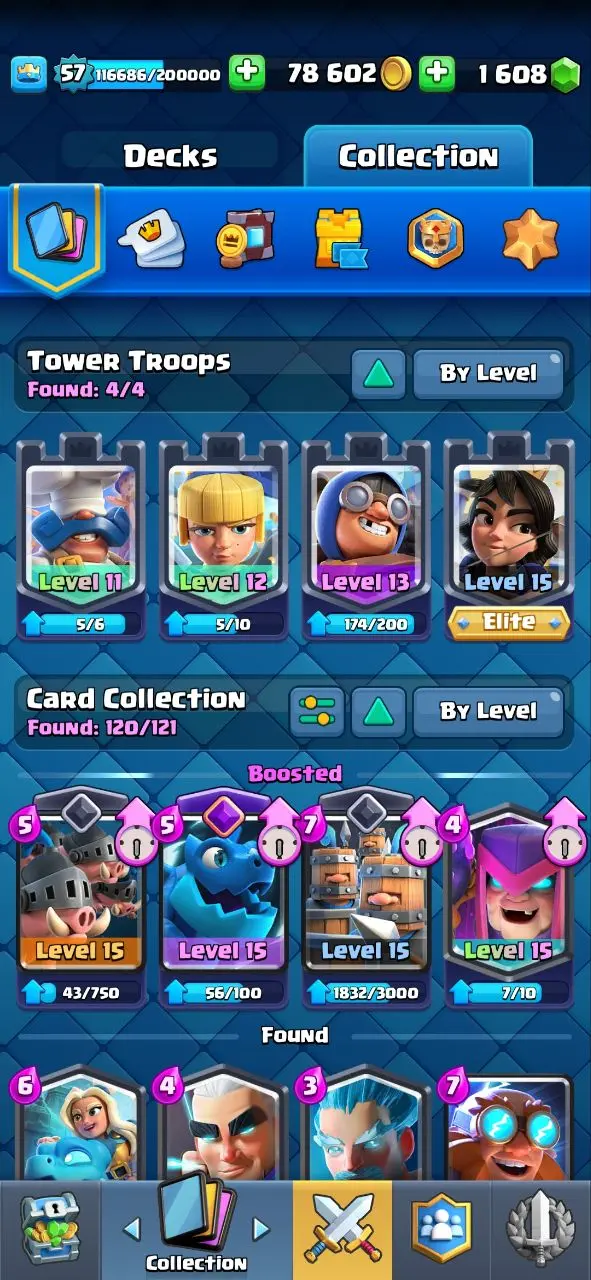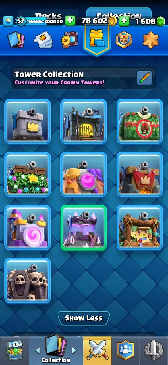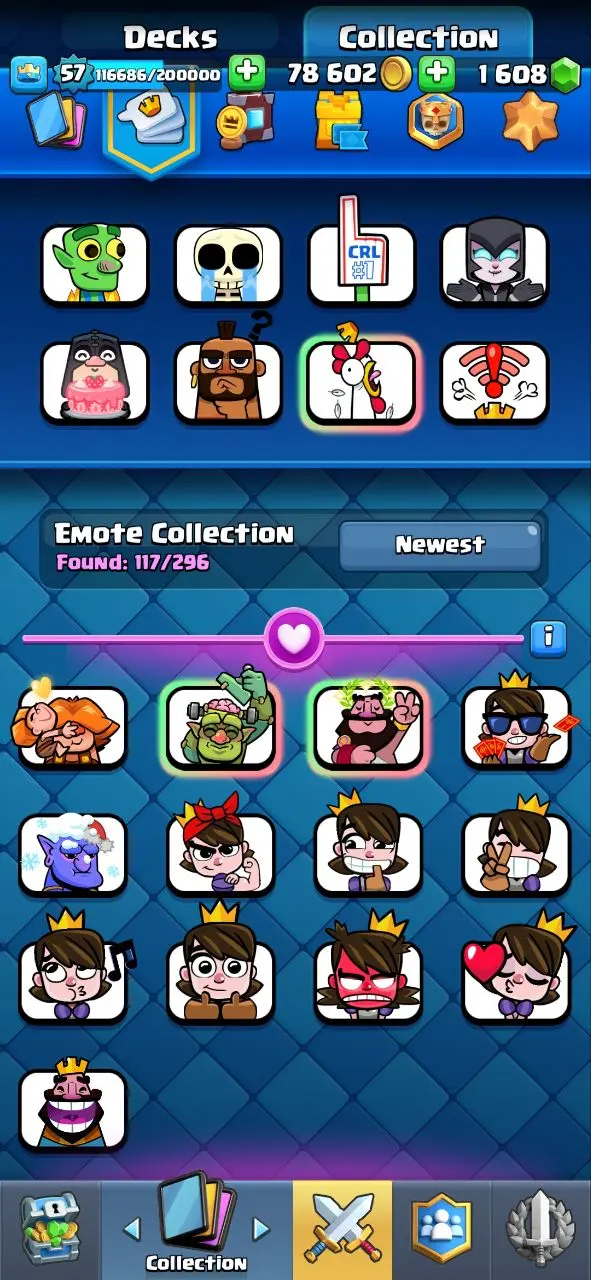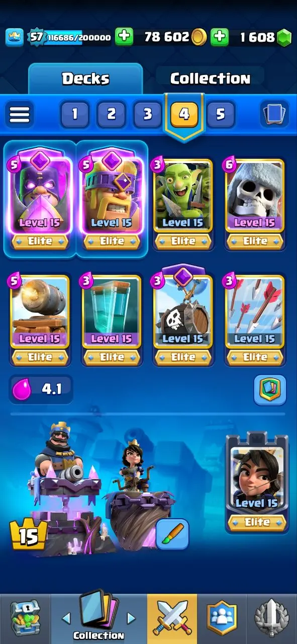 🔥KT15 XP57🔥 | 42 MAX 15 ELITE | 13 EVOLOTION | 11000 TROPHY | 117 EMOTE | 9 TOWER SKIN | 1608 GEMS | INSTANT DELIVERY