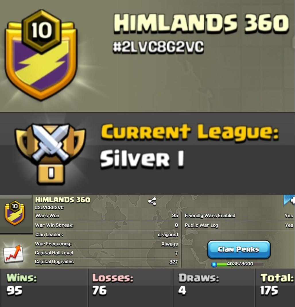 Level 10 clan || clan capital 7 || silver 1 || name - HIMLANDS 360