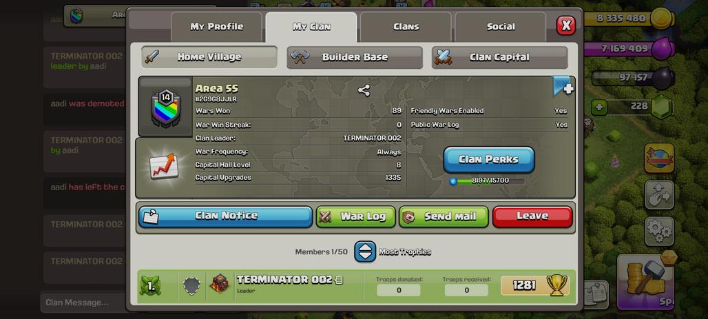|| English name clan || L.M.FANS || clan level 12 || league gold 2 || clan capital 5 ||