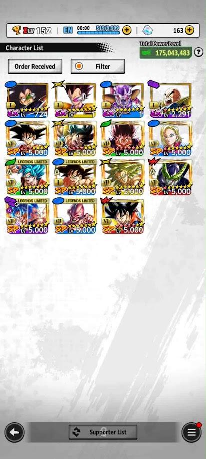 Lv152, 175M+ power, top meta teams (Saiyan, Hybrid, Son Family, Fusion)