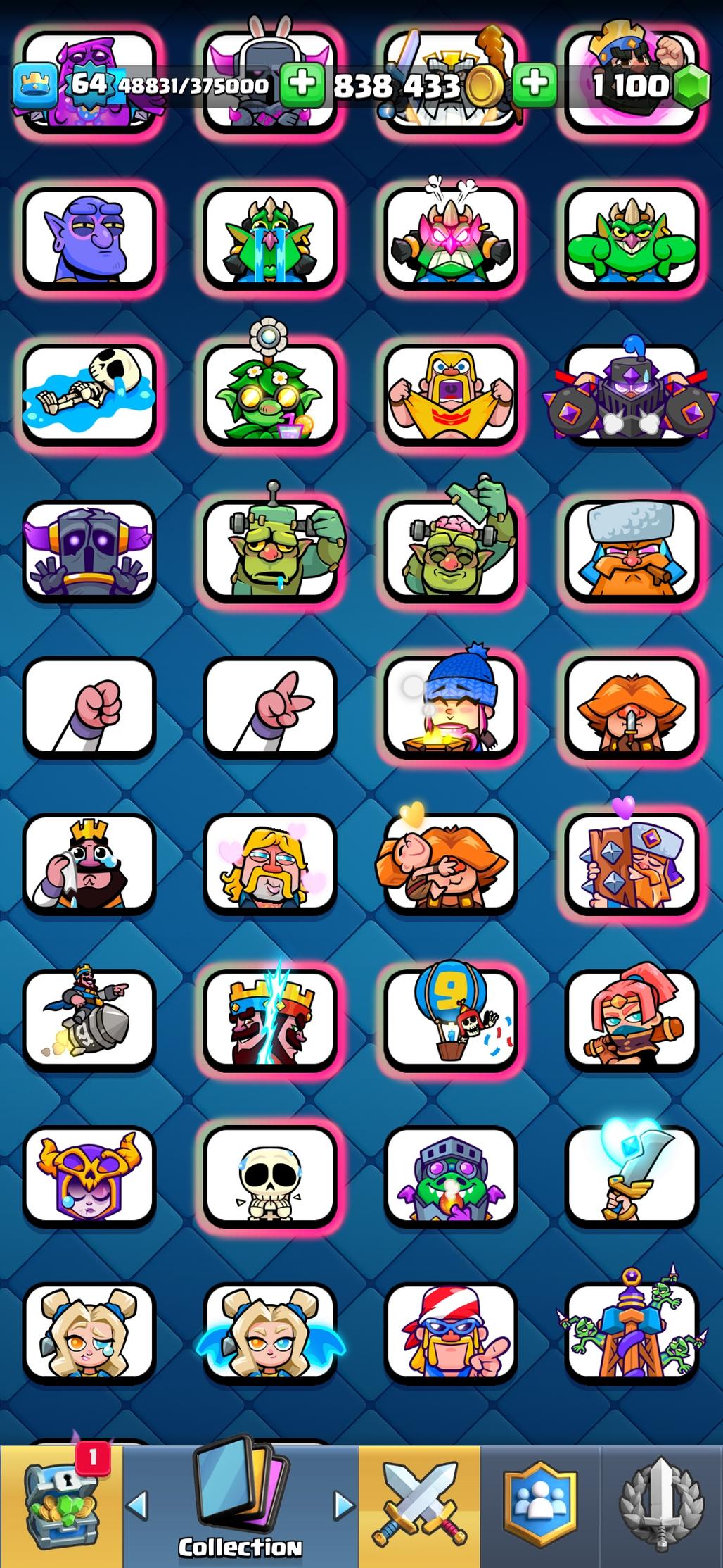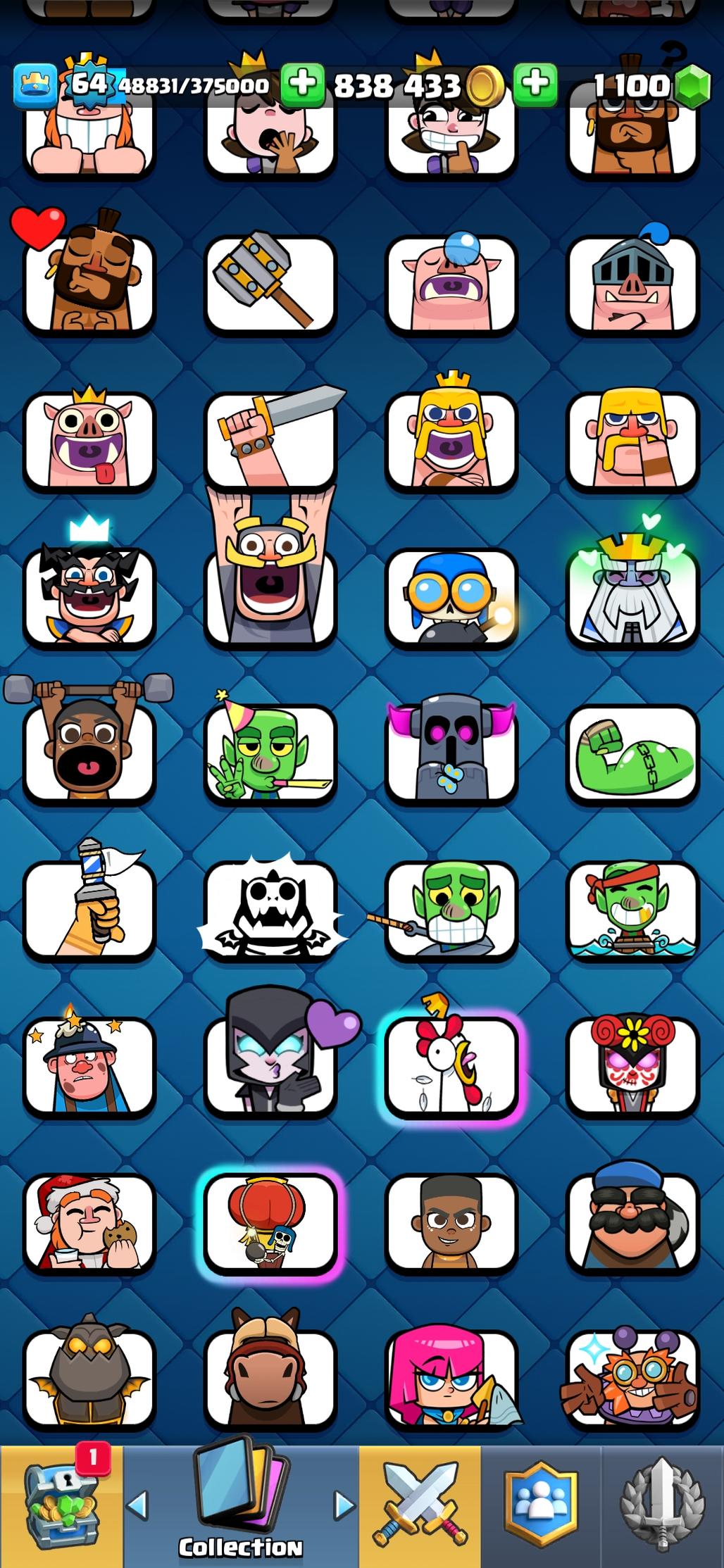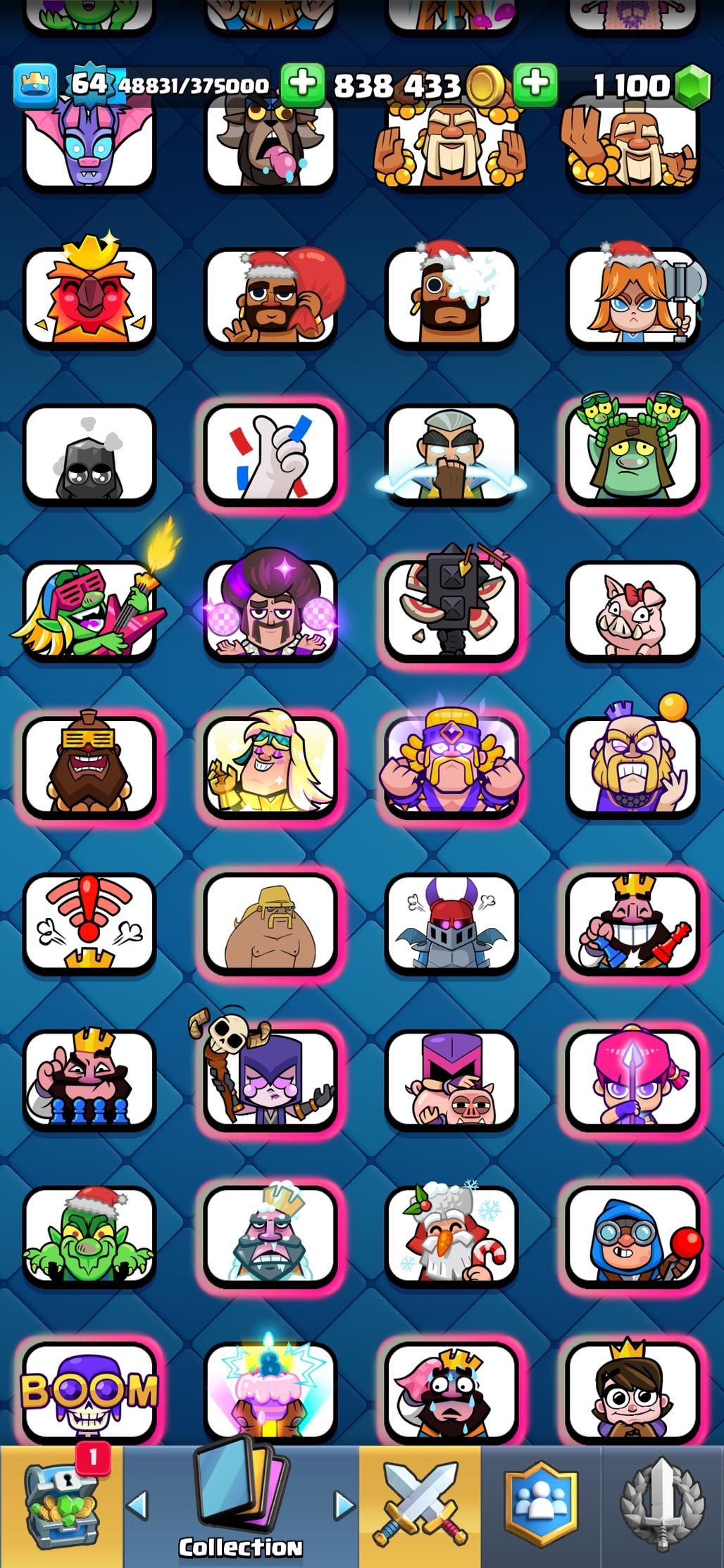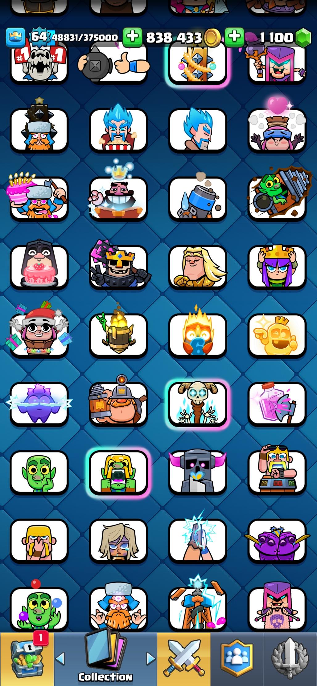 Lvl-64 | 113-Card Max | 45-Elite | 23-Evo | [178-Emote] | 11800 Trophy | Name Chang Free