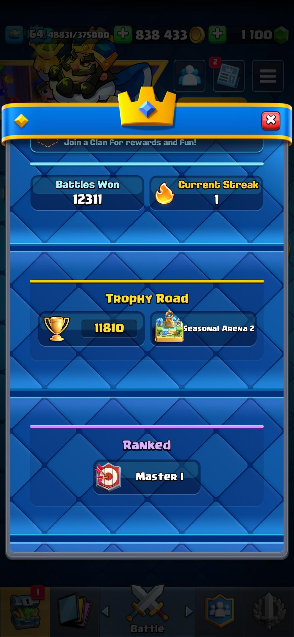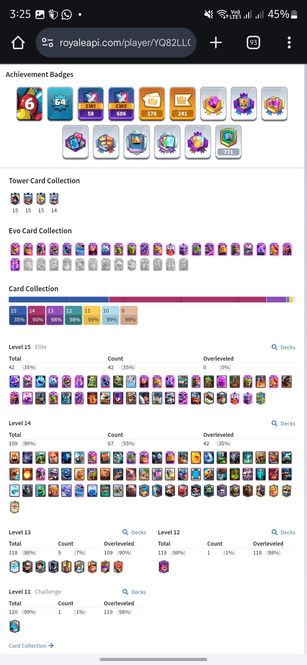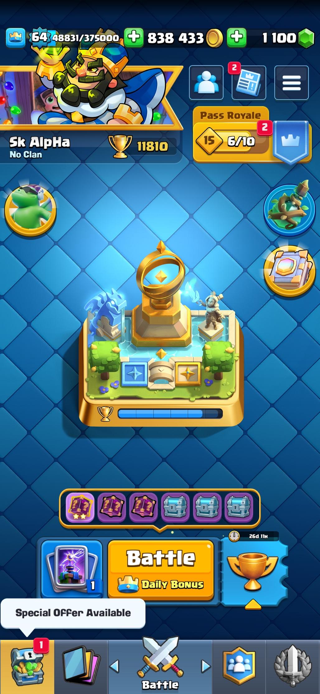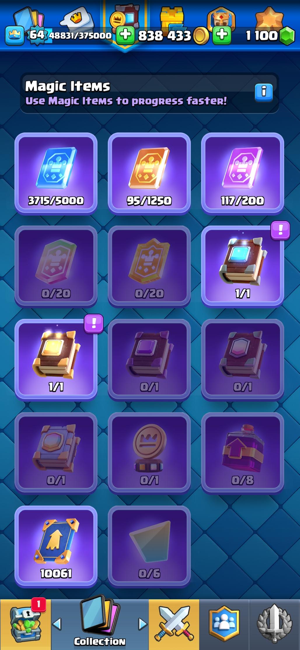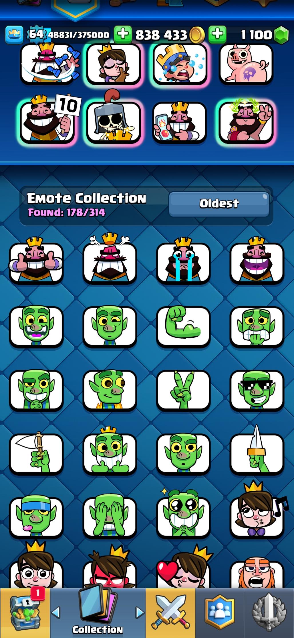 Lvl-64 | 113-Card Max | 45-Elite | 23-Evo | [178-Emote] | 11800 Trophy | Name Chang Free