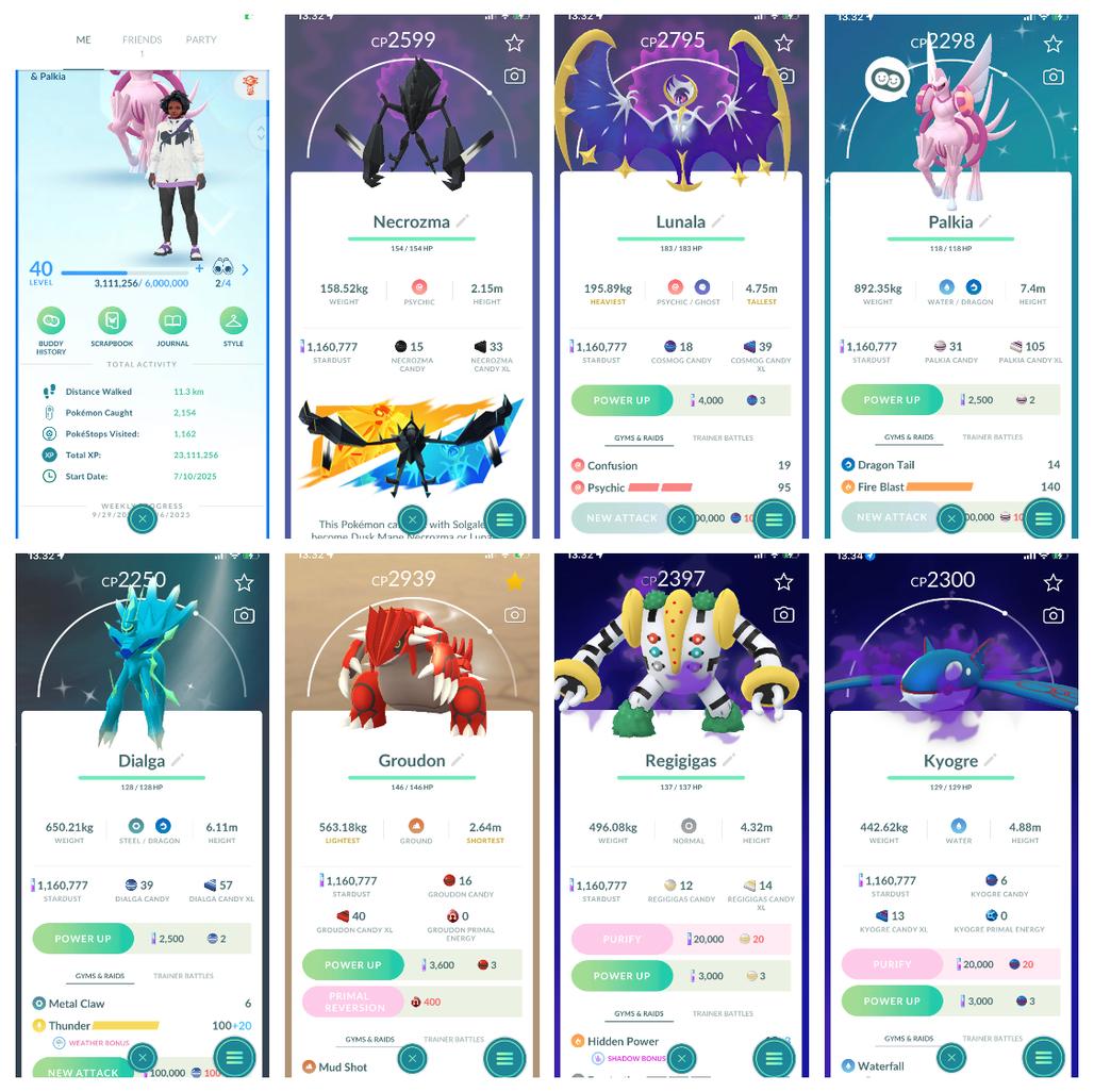 M 1.994 Level 40 Super Lunala Necromaz EvoPalkia Dialga Kyogre Groudon 11 Shiny And Legendary 171 Shiny 209 Legendary 7