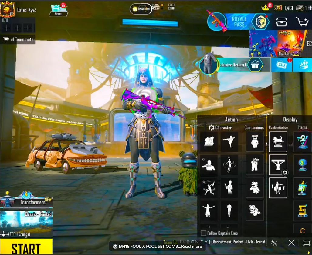 M416 FOOL X FOOL SET ANUKHRAAA X-SUIT (2-STAR) 15X DEMANDING GUNLABSS 2X GUNMAX | 01X KILL MSG M416