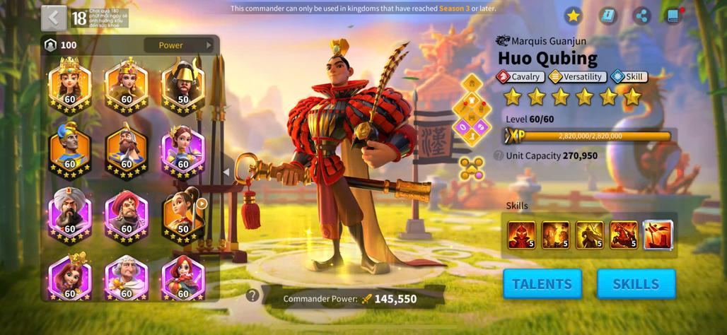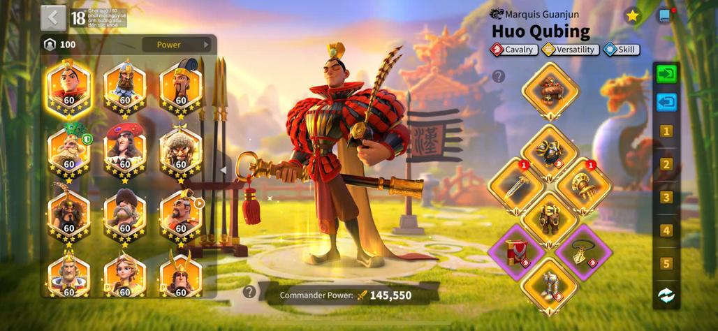 - Max 19 Commanders :Huo Qubing,Cao Cao,Alexander Nevs,Xiang Yu,Zhuge Liang,Heraclius,Attila,Gonzalo de Cordoba,Hermann Prime,Joan Of Arc Prime,Jan Zizka,Arthur pendragon