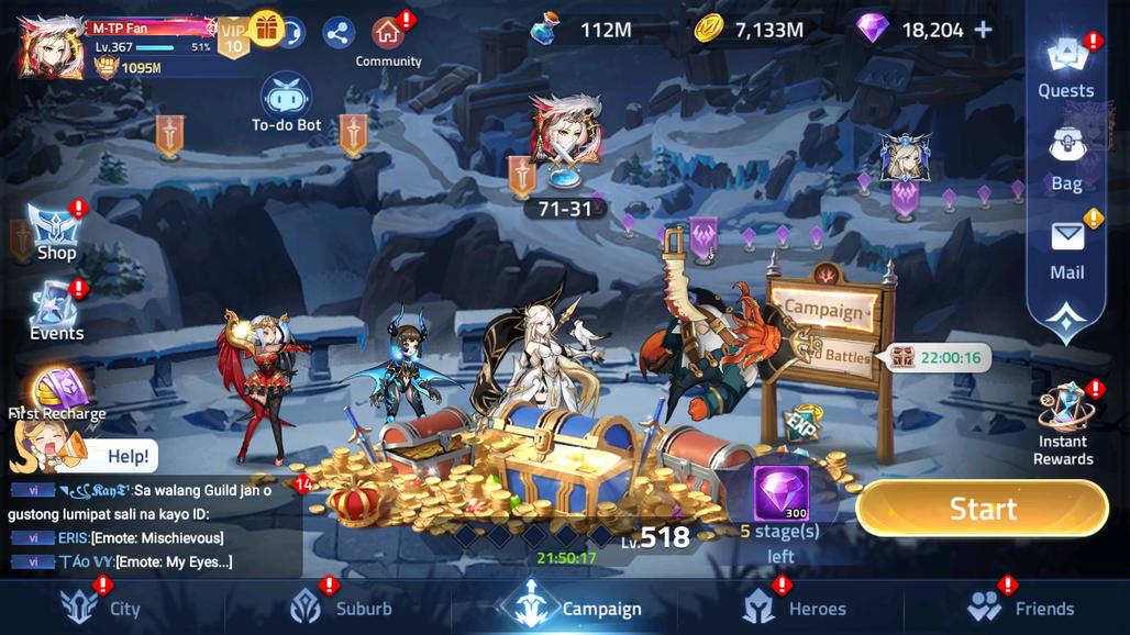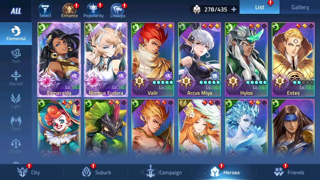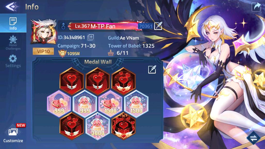 MLA14-2: Lv 367 - Vip 10, SV 70361, Power 1095M - Top 6 All - 14 Heroes Awakened - 7 Skin Epic