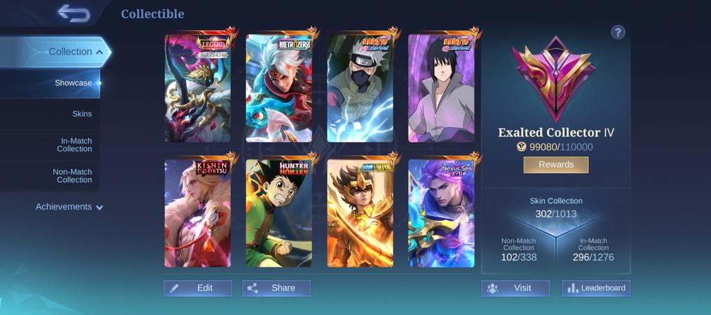 N248|LV 101|EXALTED COLLECTOR IV|302 SKIN|ALPHA LEGEND|2 NARUTO SKIN(HAYABUSA,SUYOU)LANCELOT KINSHIN|NOLAN NAVIGATOR|DYR