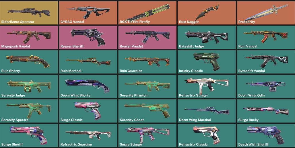 NA - LVL 71 - UNRANKED -3 KNIVES -30 SKINS (15,700 VP Spent) Elderflame Operator, CYRAX Vandal, RGX 11z Pro Firefly, Rui