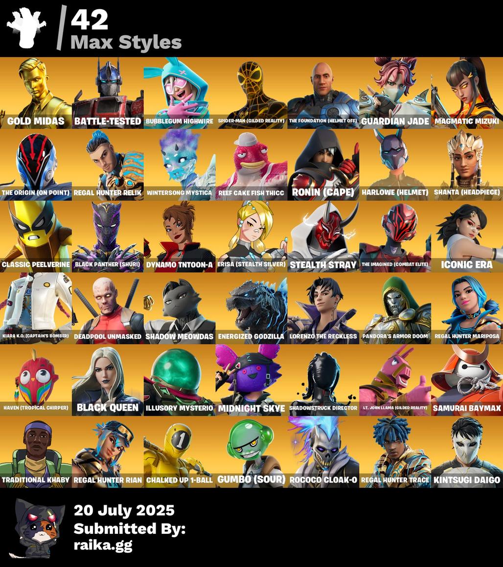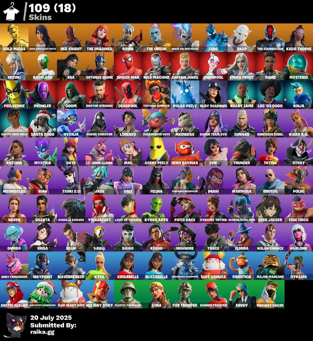 [OG] 109 skins | Gold Midas | Gear Specialist Maya | Red Knight | The Imagined | Ronin | The Origin | Zero
