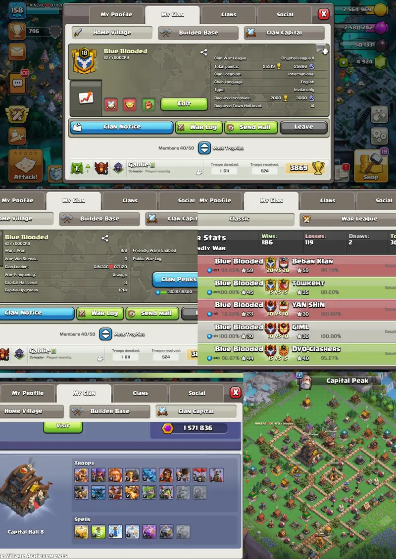 OP NAME CLAN BLUE BLOODED LEVEL 18 GOOD WARLOG LEVEL 8 CC CRYSTAL II
