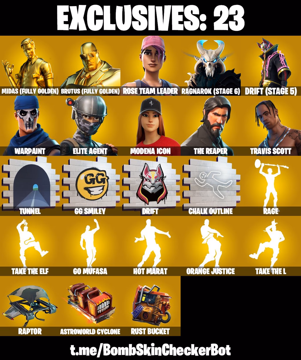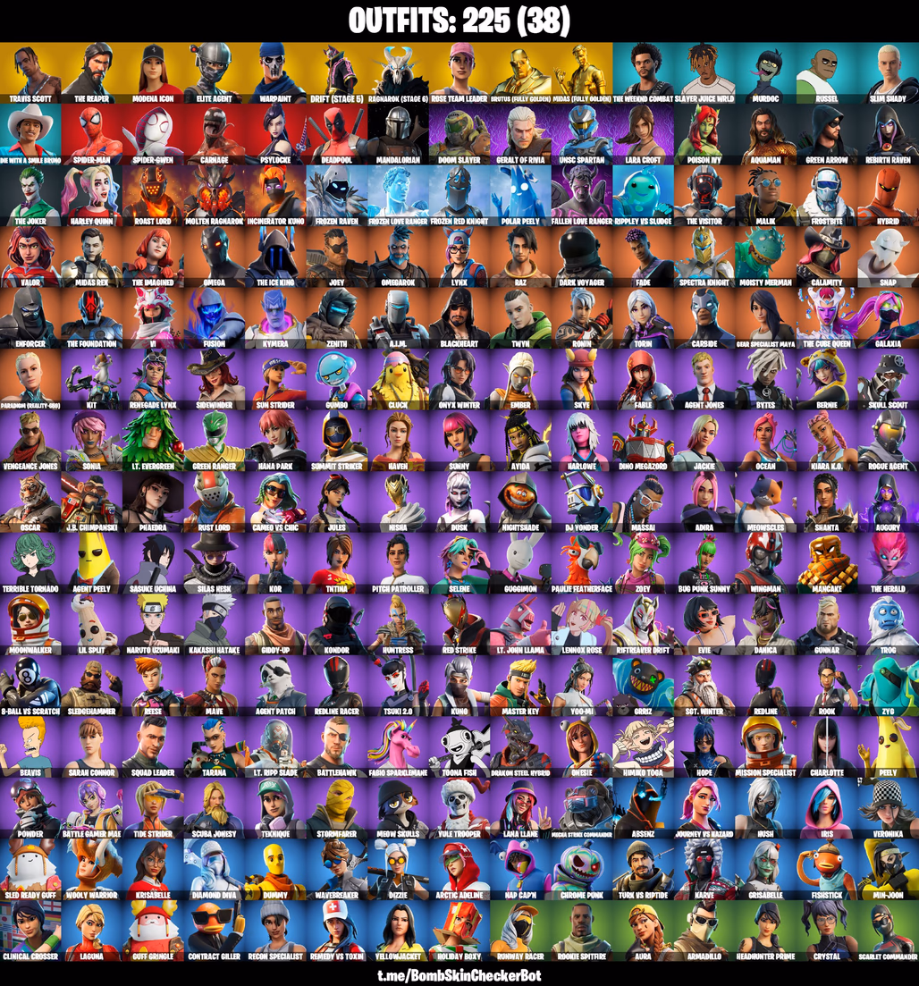 Rose Team Leader | Brutus | Midas | The Weeknd Combat | Slayer Juice WRLD | Murdoc | Russel | Slim Shady | Die With A Smile Bruno | Spider-Man | Spider-Gwen | Carnage | Psylocke | Deadpool | Mandalorian | Doom Slayer | Geralt of Rivia | UNSC Spartan | Lara Croft | Poison Ivy | Aquaman | Green Arrow | Rebirth Raven | The Joker | Harley Quinn | Roast Lord | Molten Ragnarok | Incinerator Kuno | Frozen Raven | Frozen Love Ranger | Frozen Red Knight | Polar Peely | Fallen Love Ranger | Rippley vs Sludge | The Visitor | Malik | Frostbite | Hybrid | Valor | Midas Rex | The Imagined | Omega | The Ice King | Joey | Omegarok | Lynx | Raz | Dark Voyager | Fade | Spectra Knight | Moisty Merman | Calamity | Snap | Enforcer | The Foundation | Vi | Fusion | Kymera | Zenith | . | Blackheart | Twyn | Ronin | Torin | Carbide | Gear Specialist Maya | The Cube Queen | Galaxia | Paradigm (Reality-659) | Kit | Renegade Lynx | Sidewinder | Sun Strider | Gumbo | Cluck | Onyx Winter | Ember | Skye | Fable | Agent Jones | Bytes | Bernie | Skull Scout | Vengeance Jones | Sonia | Lt. Evergreen | Green Ranger | Hana Park | Summit Striker | Haven | Sunny | Ayida | Harlowe | Dino Megazord | Jackie | Ocean | Kiara . | Rogue Agent | Oscar