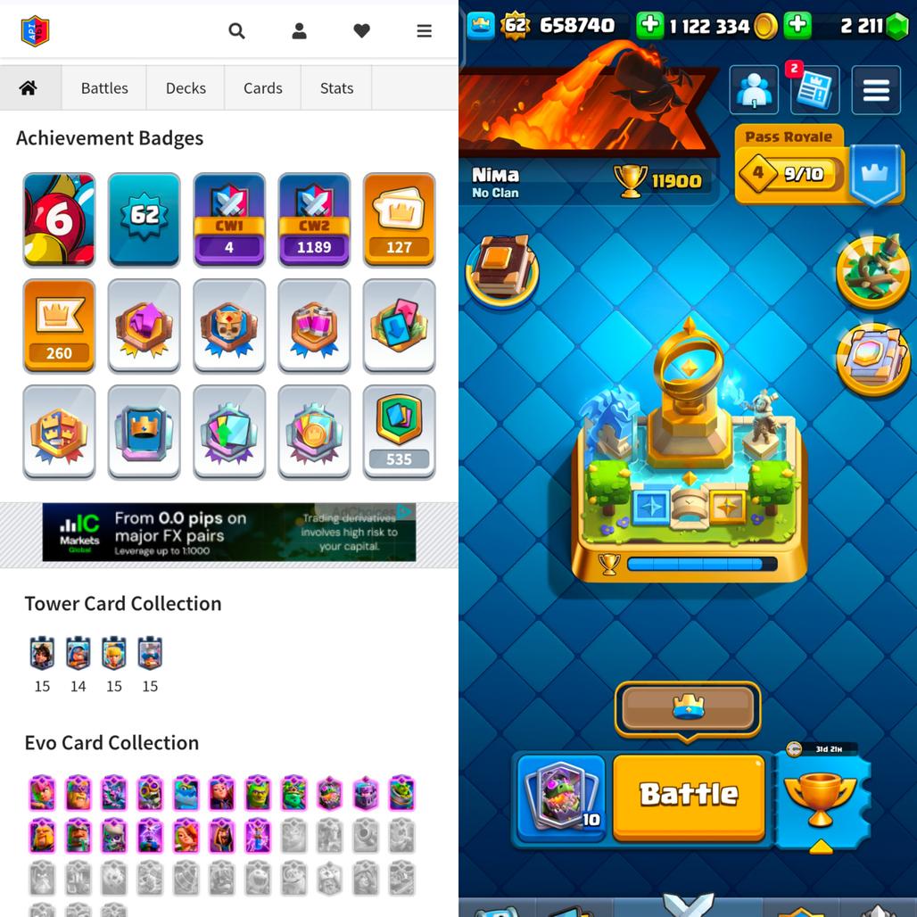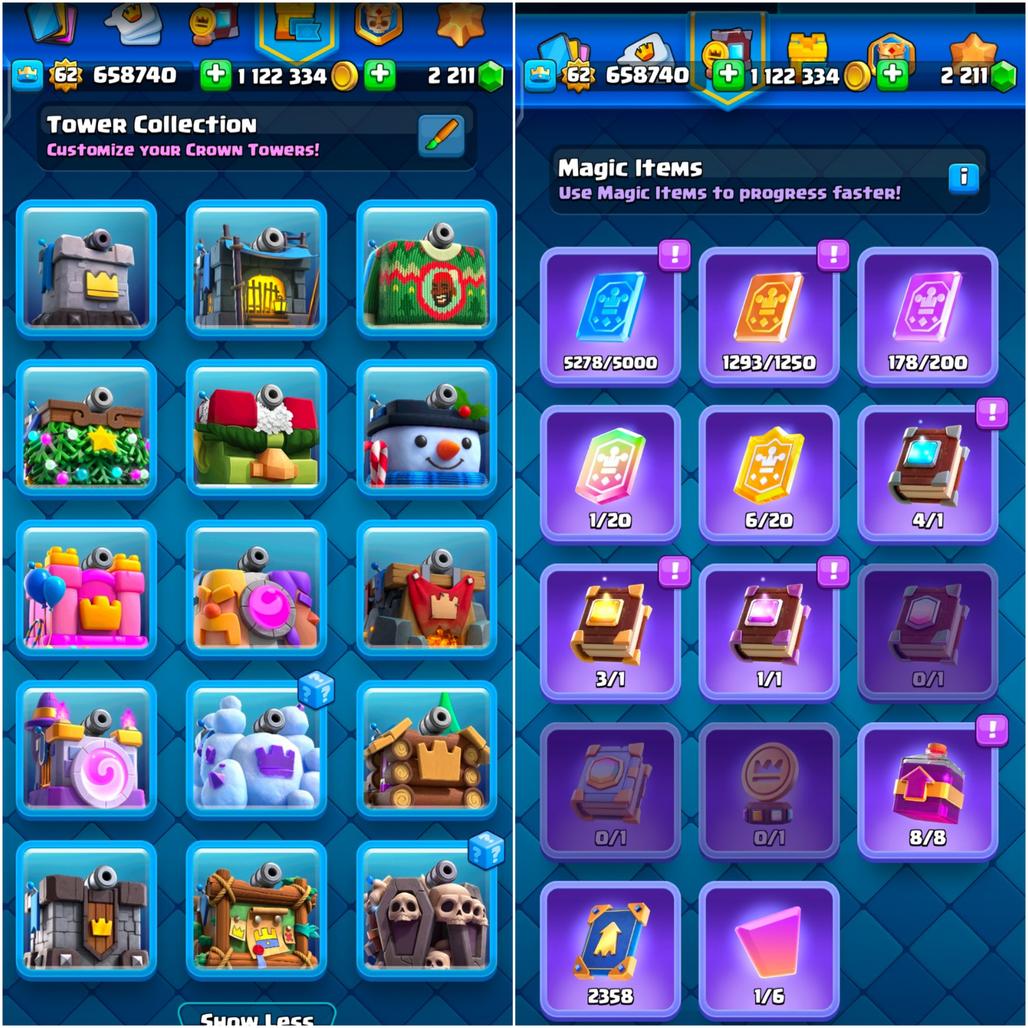 [ PREMIUM ] KT 15 - XP 62 [ 30 ELITE CARDS ] 1.2 MILLION GOLD [ 80 MAX CARDS ] 127 EMOTES - 15 TOWER SKIN -A765