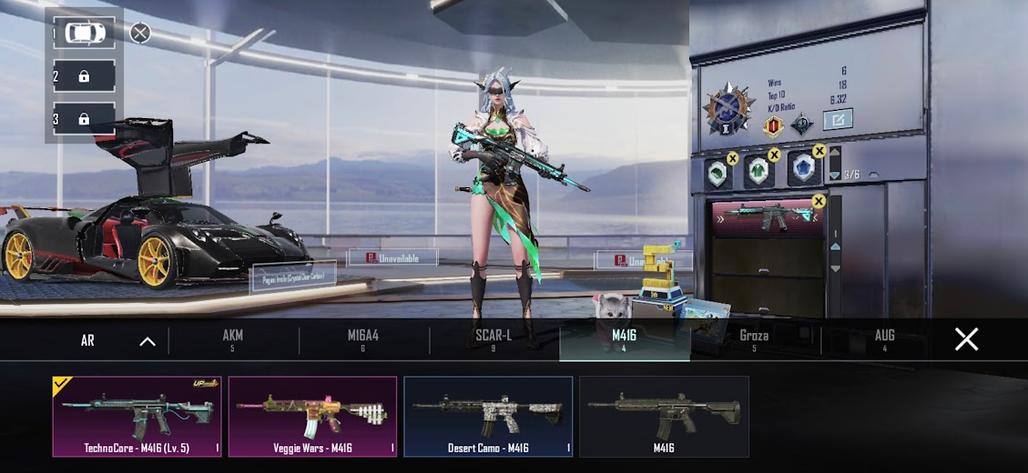 PUBG09-Hypercar Pagani (Crystal Clear Carbon) - Lots of Overall Outfits ( 26 Red Outfits - 59 Pink Outfits