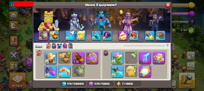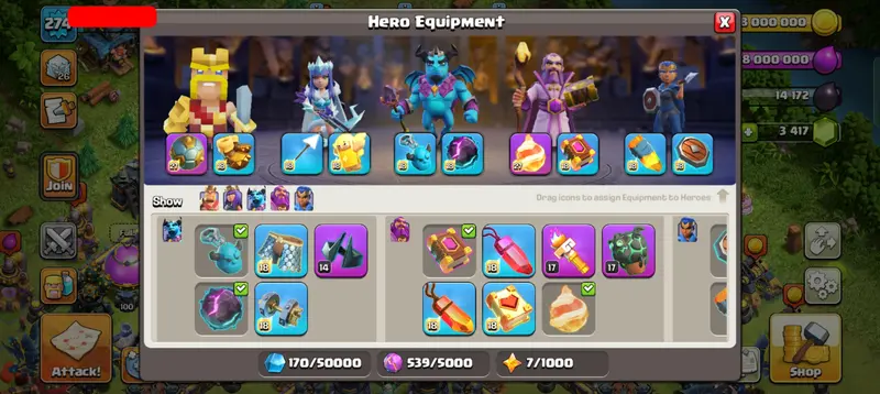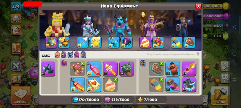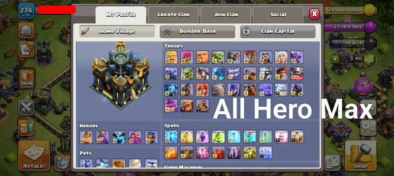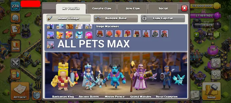 PvP LEGEND RANKED - 20 EQUIPMENT MAX - TOWNHALL 17 MAX HERO - PETS MAX - 274 XP - 3400 GEM - 875 MEDAL - 23K CUP - INSTANT - AVAILABLE