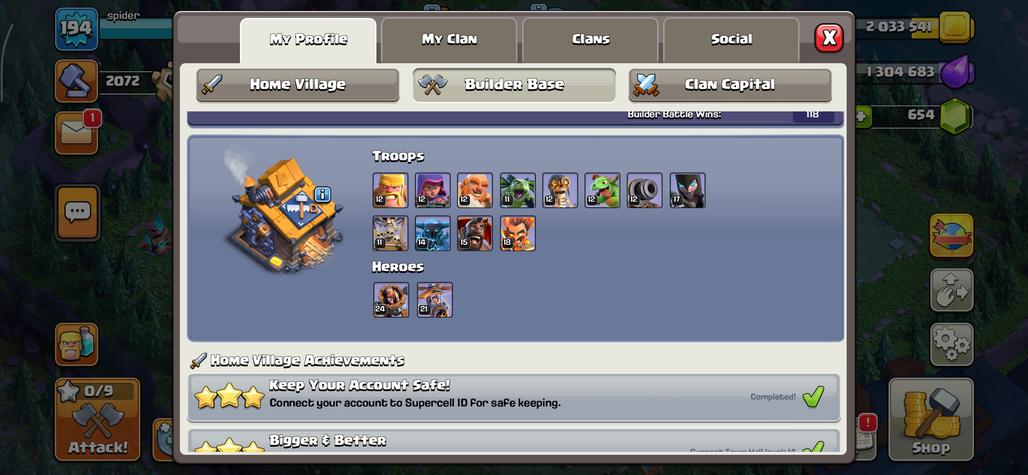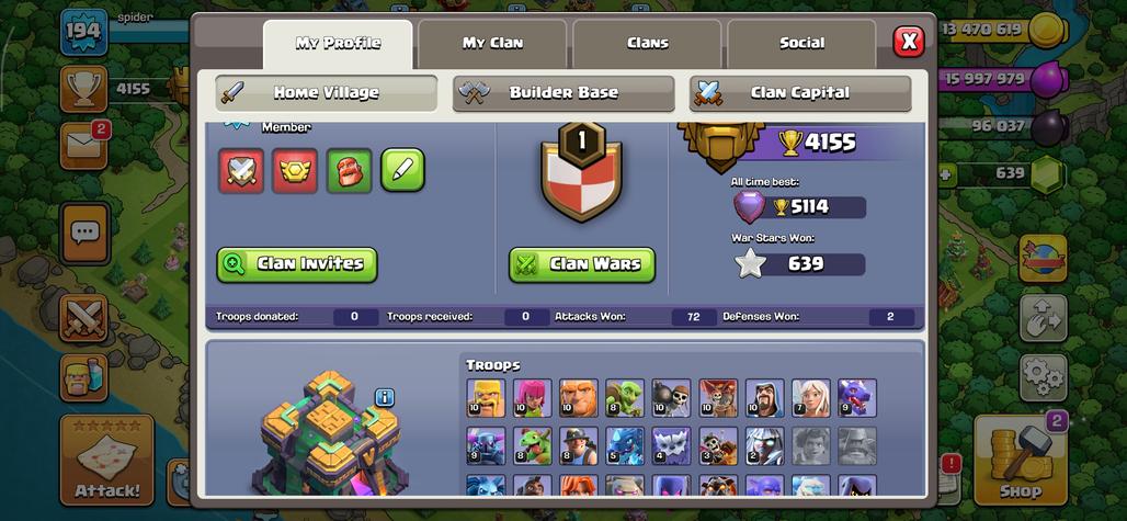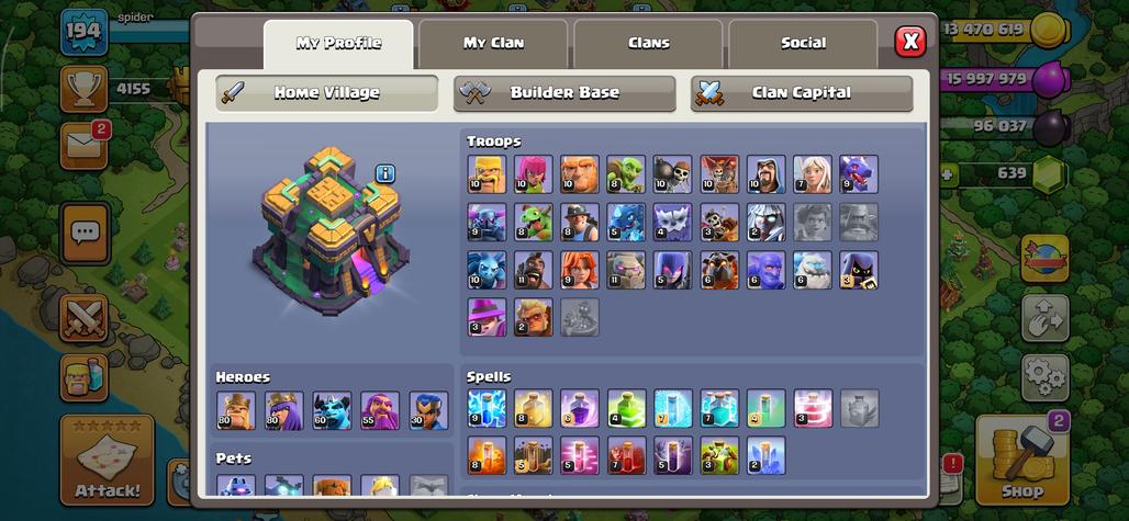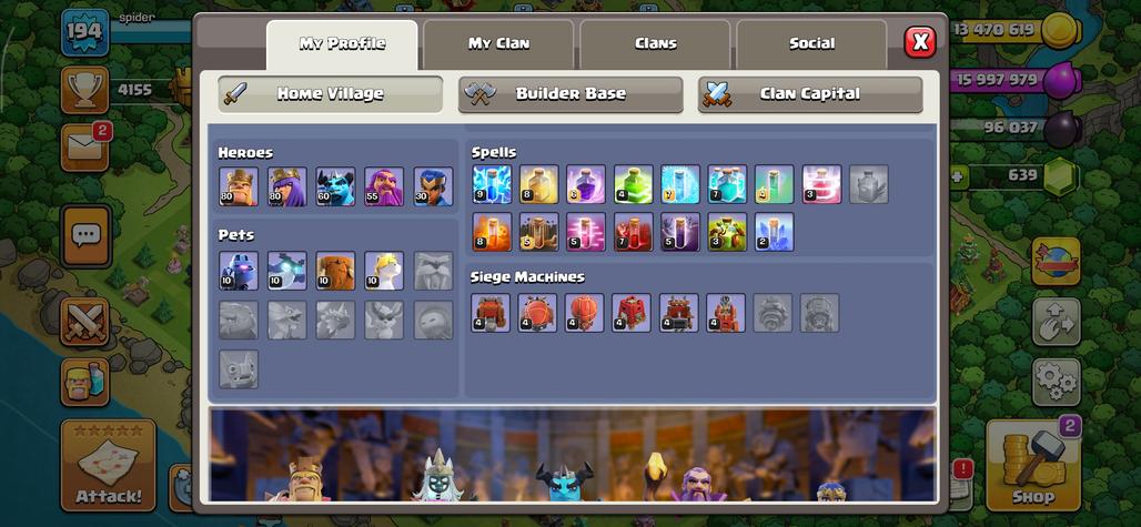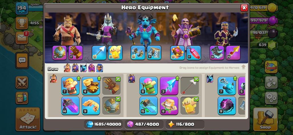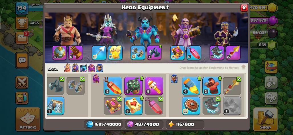TH 14 FULL MAX | 5X HERO MAX [ 80-80-60-55-30 ] 9 EPIC EQUIPMENT | NC-FREE | 207 MEDEL | 6 BUILDER | 194 XP LEGEND HIT