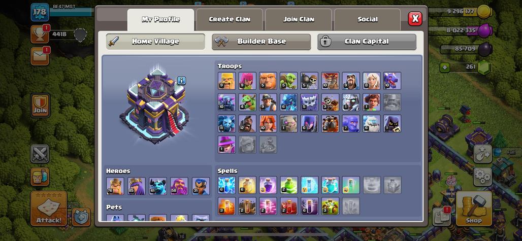 TH 15 WALL 95 PERCENT MAX🔥 | XP 178 | PET 8🐹 | CWL 165 | 4 EPIC EQUIP (SB23-MM23-F23-RS20) | NC FREE | 76-85-61-58-31