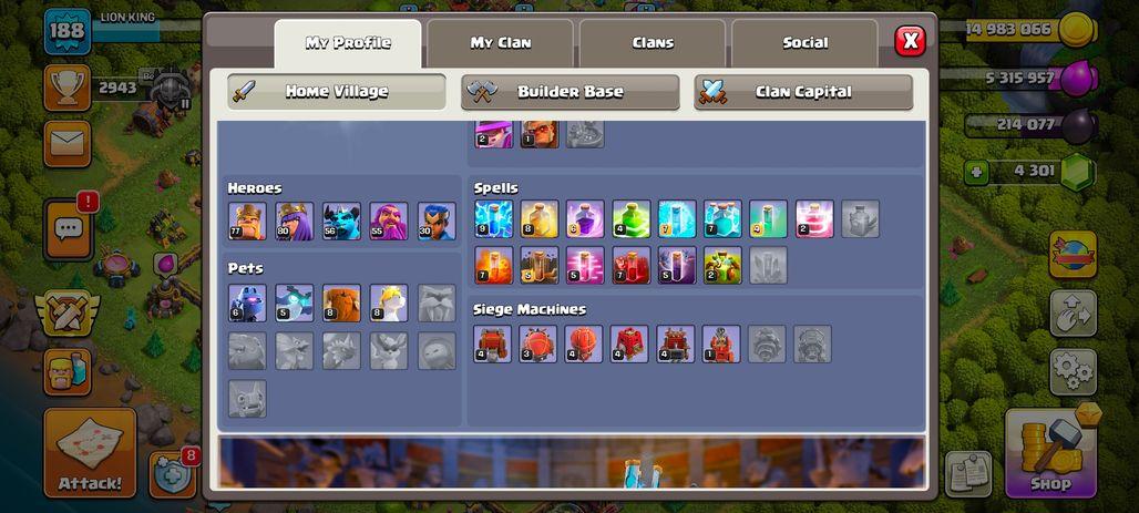 TH14 FULL MAX PREMIUM ACCOUNT [77-80-56-55-30] LOTS OF HERO SKINS ARE AVAILABLE [GEMS 4301] FULL ACCESS INSTANT DELIVERY