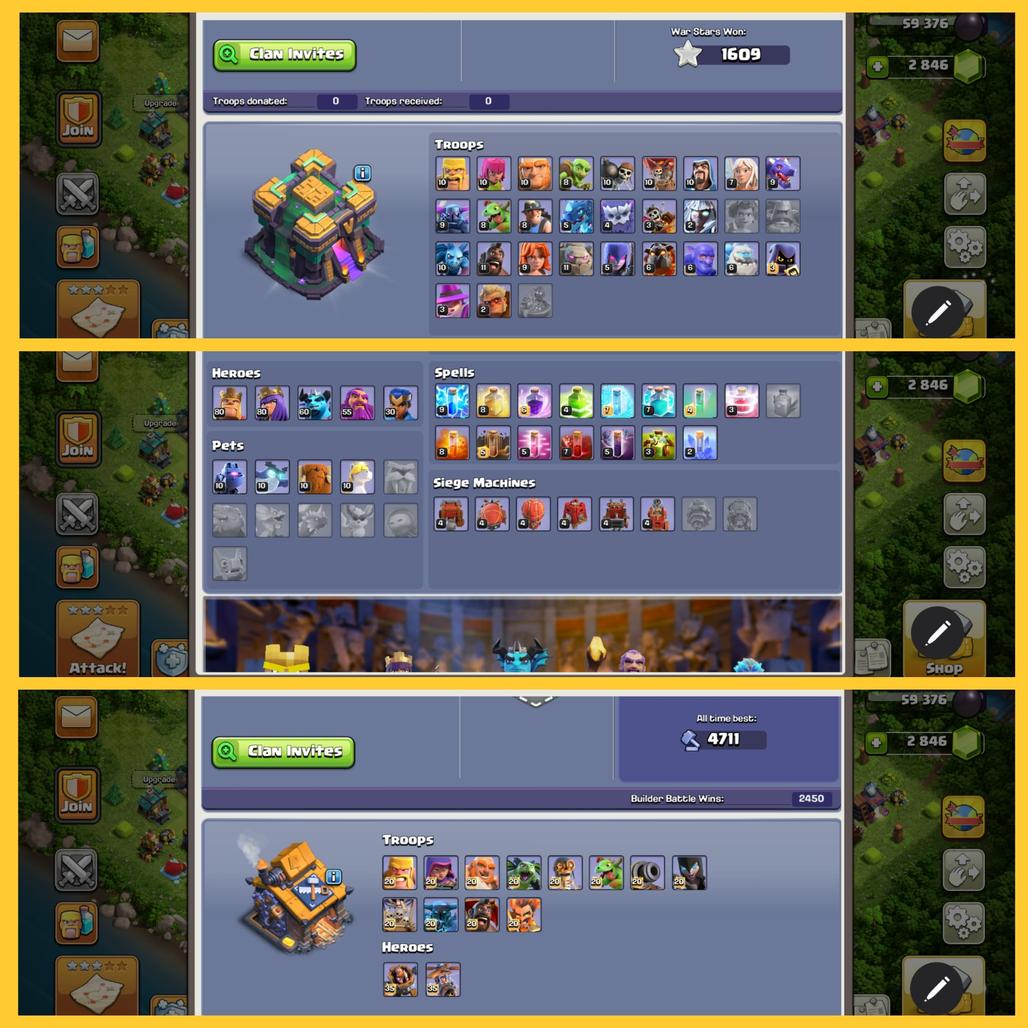Trophies: 2961 |💎 Gems: 2846 | 🎖️ War Stars: 1609