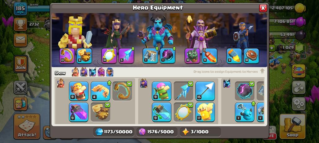 TH16:-DARK-BLUE WALS:-XP:-185:-HER:-69-62-41-31-25:-4EPIC EQUIPMENT:-ALL SIEGE-PET AVAILABLE:-NC FREE:-CHEAP-BEST DEAL